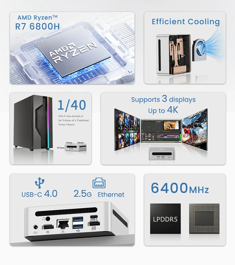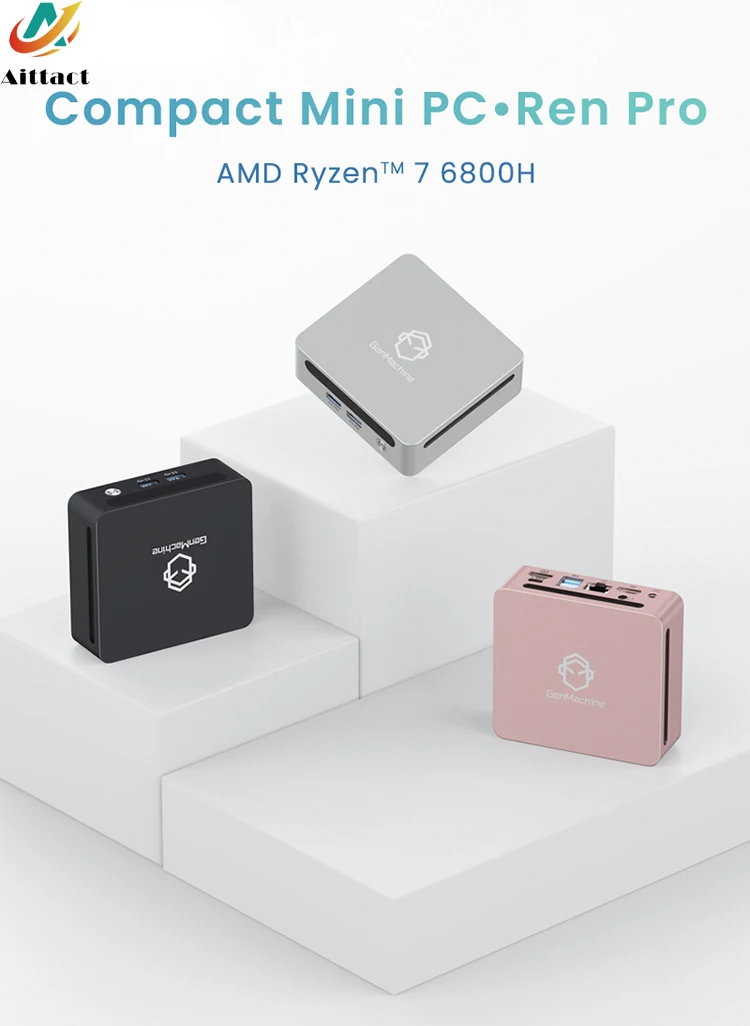 Aittact Ryzen PRO 6800H MINI PC Windows 11 8C/16T 3.2Ghz LPDDR5 6400Mhz 256/512GB/1T M.2 WIFI6 BT5.2 Computadora de juegos Diy