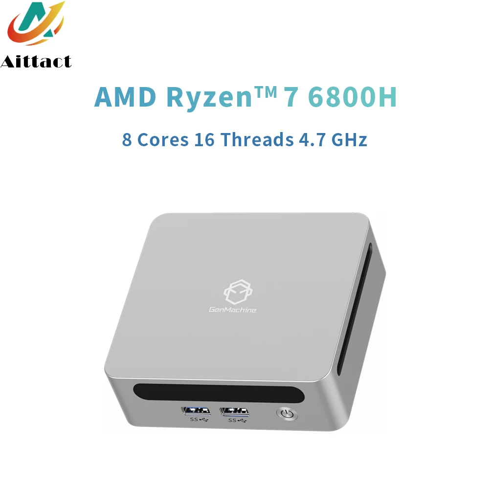 Aittact Ryzen PRO 6800H MINI PC Windows 11 8C/16T 3.2Ghz LPDDR5 6400Mhz 256/512GB/1T M.2 WIFI6 BT5.2 Computadora de juegos Diy