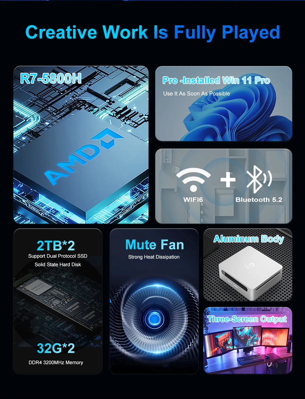 AITTACT Nuevo AMD Ryzen 7 5800H Windows 10/11 MINI PC DDR4 16/32GB 256/512GB SSD WIFI6 RTL8852, BT5.2 Computadora de juegos de escritorio