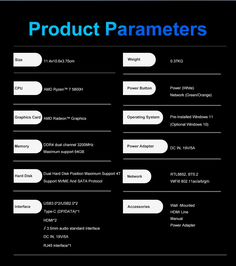 Comprar AITTACT-MINI PC AMD Ryzen 7 5800H, ordenador de escritorio para juegos, windows 10/11, DDR4, 16/32GB, 256/512GB, SSD, WIFI6, RTL8852, BT5.2