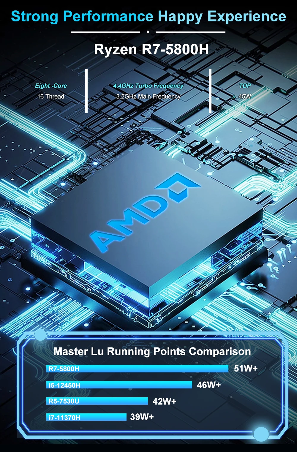 AMD Ryzen™7 5800H, 3,2 GHz hasta 4,4 GHz TDP:35 -- 54W, TYP TDP:45W