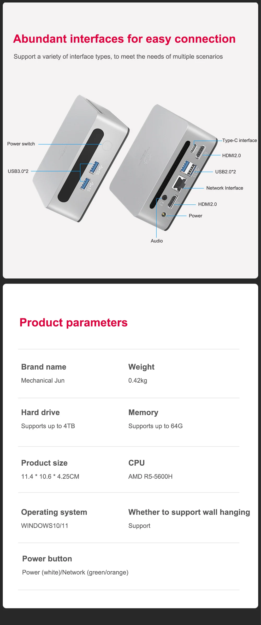 USB3.0 * 2TYPE-C * 1USB2.0*2