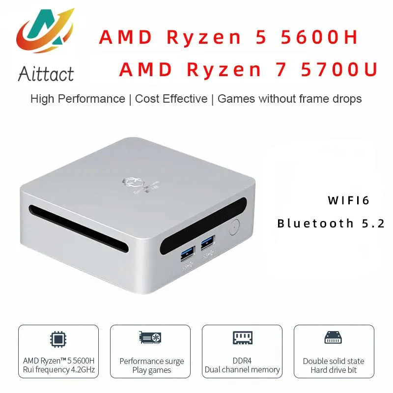 Comprar AITTACT-MiniPC AMD Ryzen 5 5600H/5700U Ryzen 7, Windows 10/11, 3,3 GHz hasta 4,2 GHz, 2 x DDR4 Max, compatible con 64GB de RAM, para juegos, WIFI6