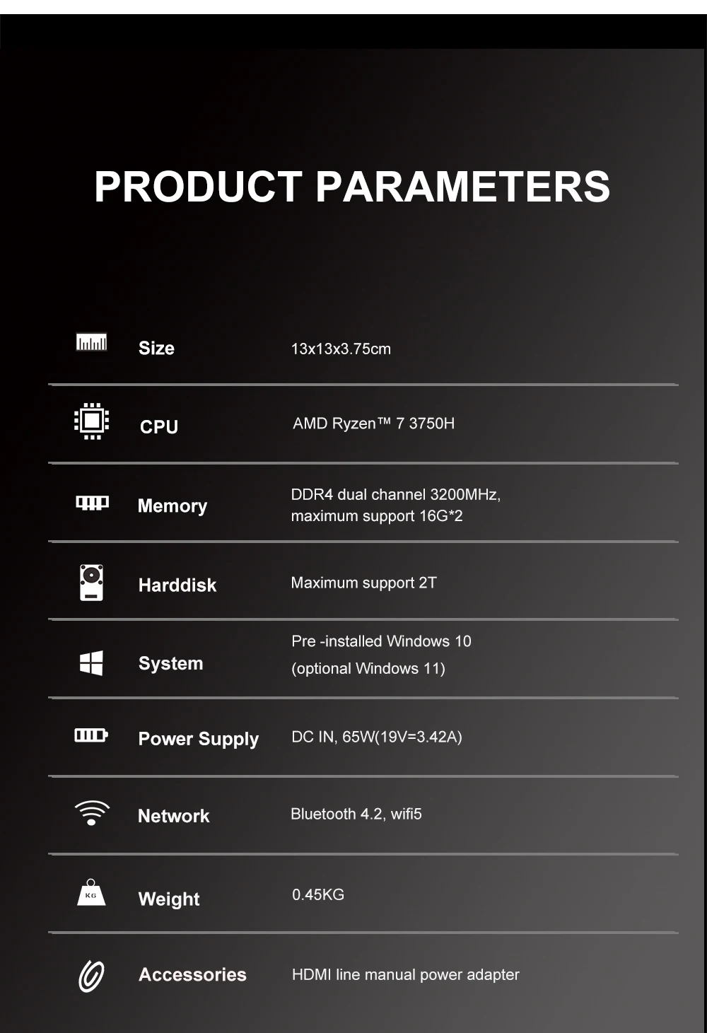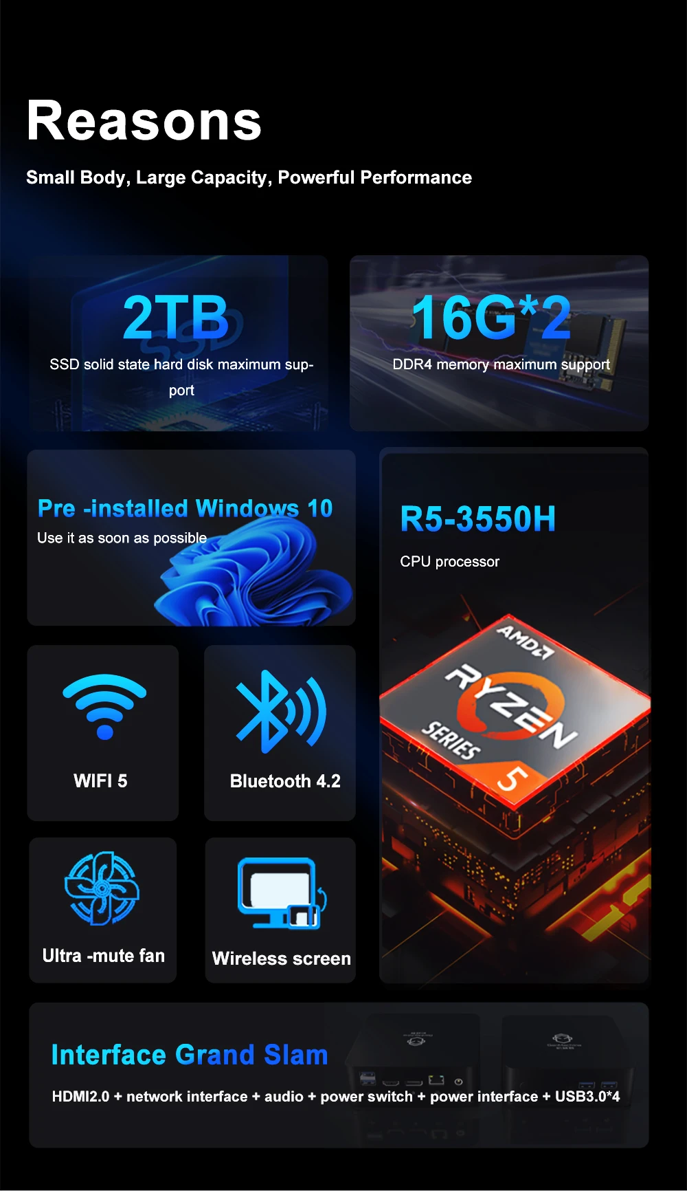 AITTACT Nueva Mini PC Luz AMD Ryzen 5 3550H CPU 2.1GHz-3.7GHz / Ryzen 3750H CPU 2,3GHz-4.0GHz Windows 11 DDR4 M.2 2280 Ram Desktop AMD Gaming PC Computadora