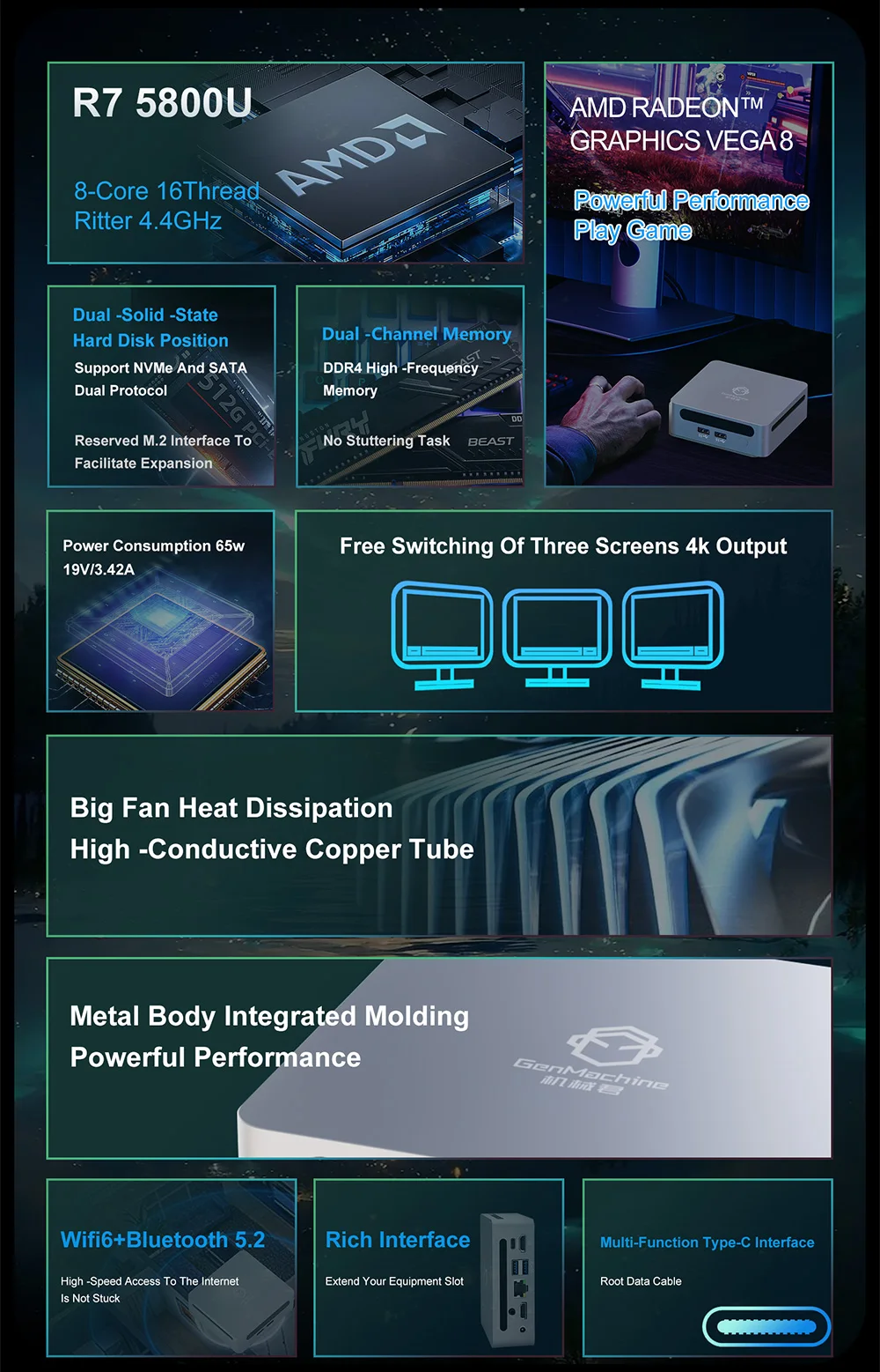 Comprar AITTACT nuevo AMD Ryzen 7 5800U Windows 11 Pro MINI PC DDR4 16/32GB 256/512GB SSD WIFI6 RTL8852, BT5.2 ordenador de juegos de escritorio