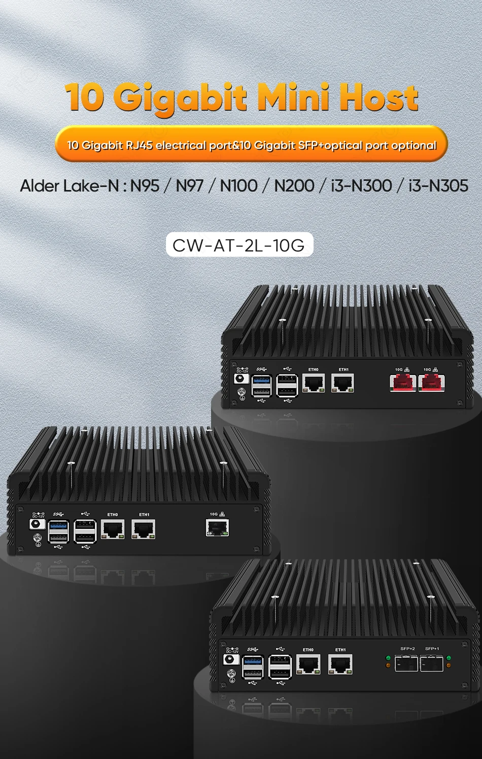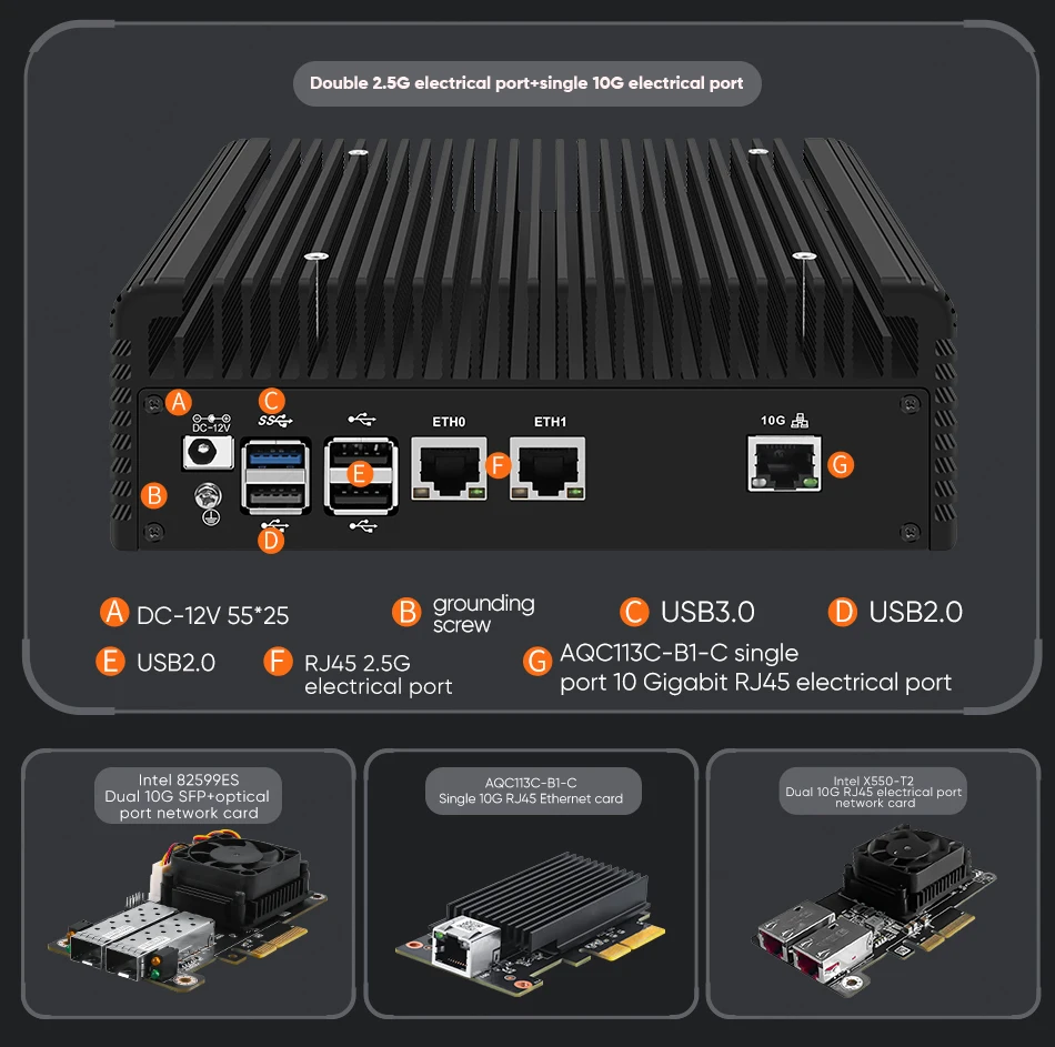 Elige el paquete con cuidado:Conjunto de chips 1x10G RJ45: Marvell AQC113C-B1-C (no se puede reconocer en sistemas pfSense, OPNsense, etc. basados en FreeBSD)Conjunto de chips RJ45 2x10G: Intel X550-T2Conjunto de chips 2x10G SFP+: Intel 82599ESSugerimos agregar un ventilador adicional para la transmisión de RAM y el disco duro si instala el sistema de máquina virtual Proxmox, ESXi, etc., para evitar choques por sobrecalentamiento.Lista de paquetes1xMini PC1 adaptador de corriente.1 cable de alimentación (enchufe UE/EE. UU./REINO UNIDO/AU según el país del comprador)