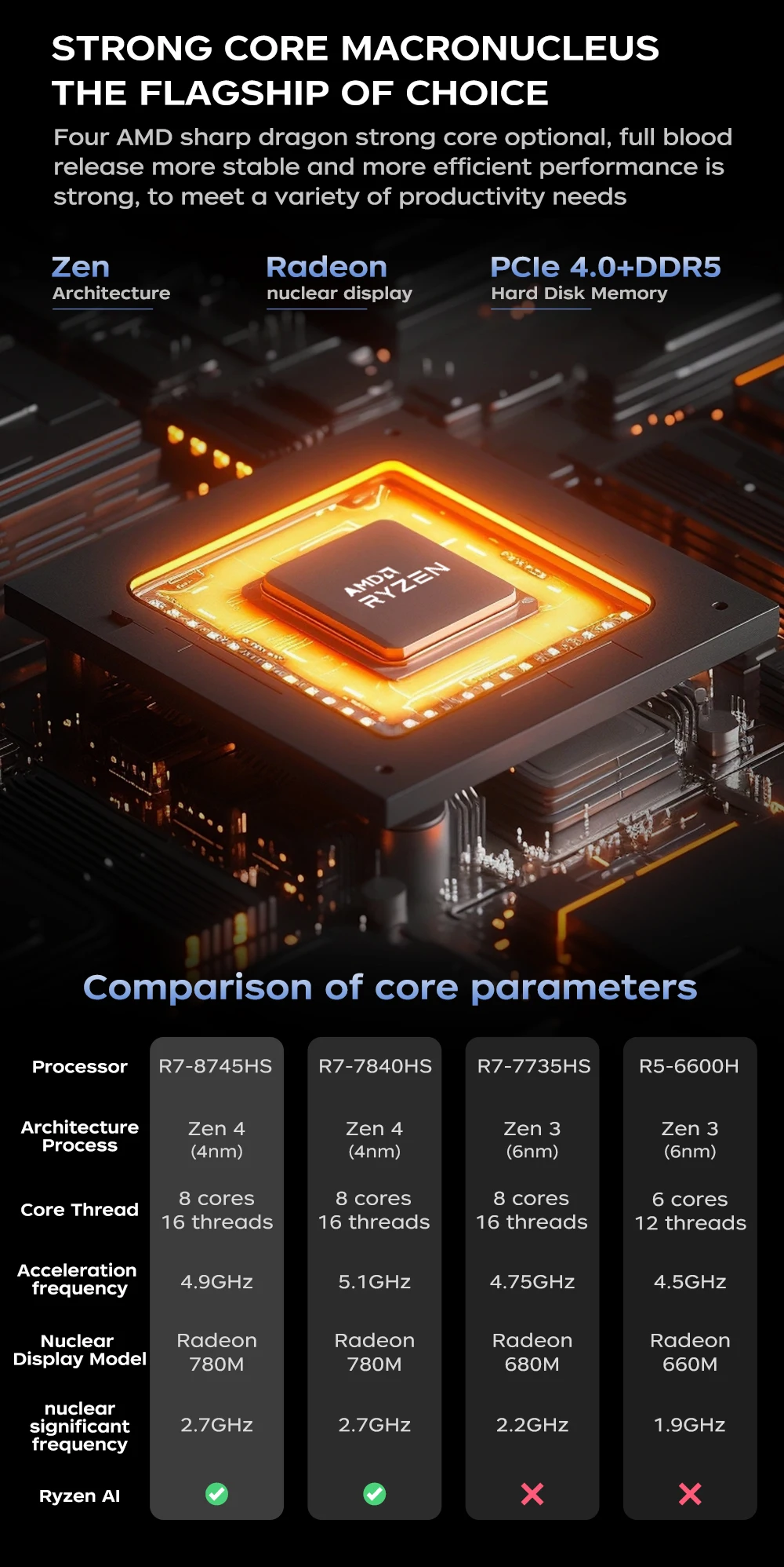 El corazón del rendimiento: procesador AMD Ryzen 7 8745HS "Zen 4".