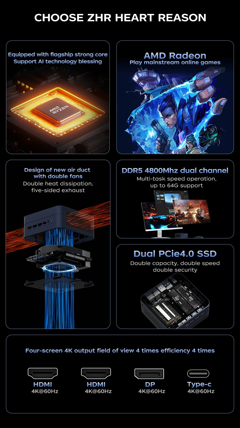 Descubra la solución informática compacta definitiva con nuestra Mini PC insignia, impulsada por el formidable procesador AMD Ryzen 7 8745HS.Este dispositivo empaqueta la potencia sin procesar de una computadora portátil para juegos en un factor de forma increíblemente pequeño, redefinyendo lo que puede lograr un mini escritorio.