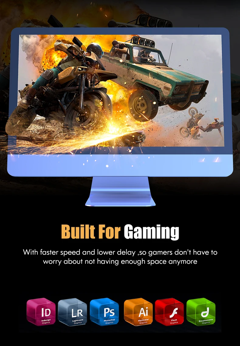 Proporcione varias grandes capacidades de 128 GB/256 GB/512 GB/1 TB/2 TB Soluciones de almacenamiento para su sistema operativo, software de trabajo, juegos de entretenimiento. Proporcione suficiente espacio para diversos datos, como videos y fotografías.