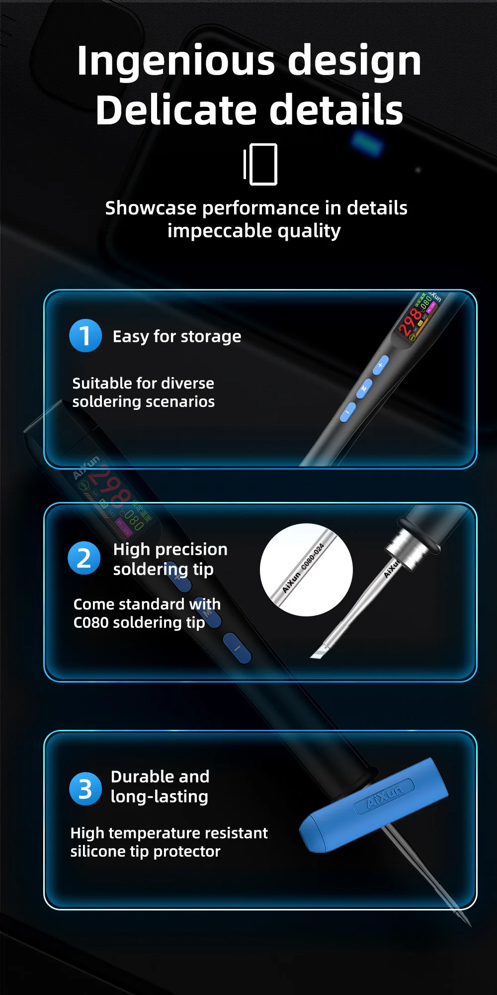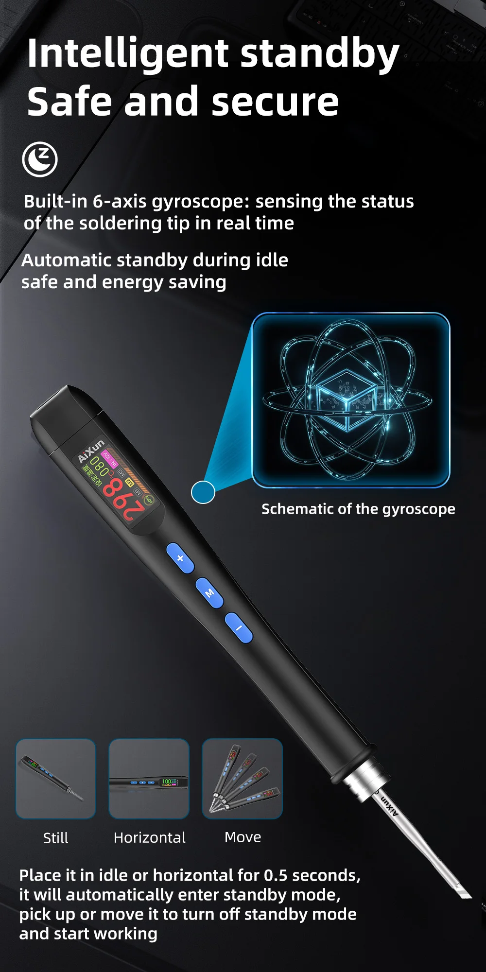 El Mini estación de soldadura AiXun T208está diseñado para proyectos de reparación electrónica y bricolaje.Con características Potencia ajustable de 18W-60W(pico 80W), Pantalla LCD de 0,96", y Soporte automático giroscópico de 6 ejes, garantiza un control preciso de la temperatura y eficiencia energética.