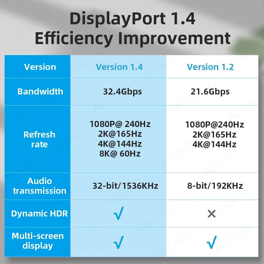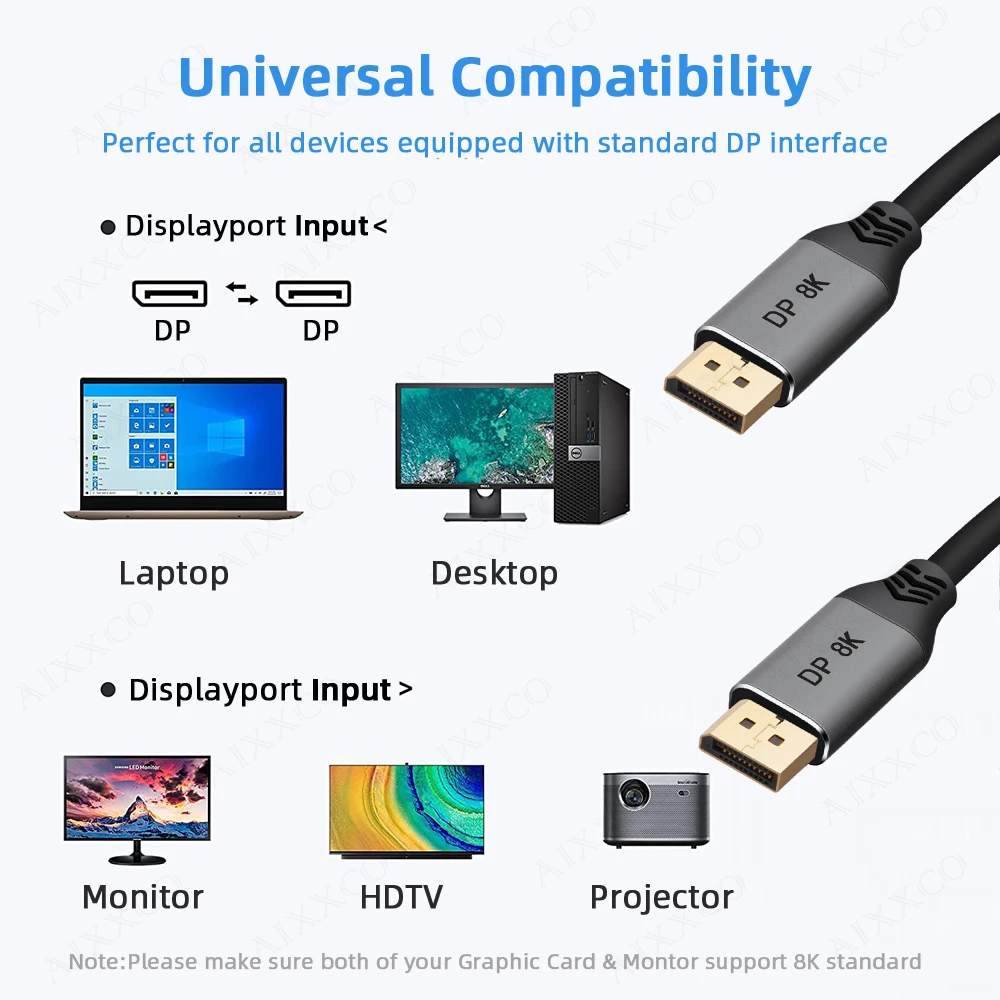 Comprar AIXXCO-Cable DisplayPort 1,4, 8K, 60Hz, 4K, HDR, 165Hz, puerto de pantalla, Cable de Audio para vídeo, PC, portátil, TV, puerto de pantalla, 1,4 DP, 1,2