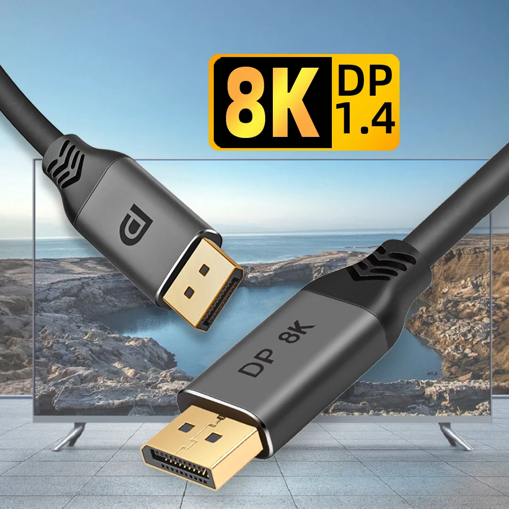 Con 32,4 Gbit/s (HBR3) de ancho de banda, este cable DisplayPort admite resoluciones UHD de hasta 8K (7680 × 4320), frecuencias de hasta 144Hz, 165Hz, O incluso 240Hz a 1440p, vídeo HDR10 y 7,1 señales de audio de sonido envolvente
