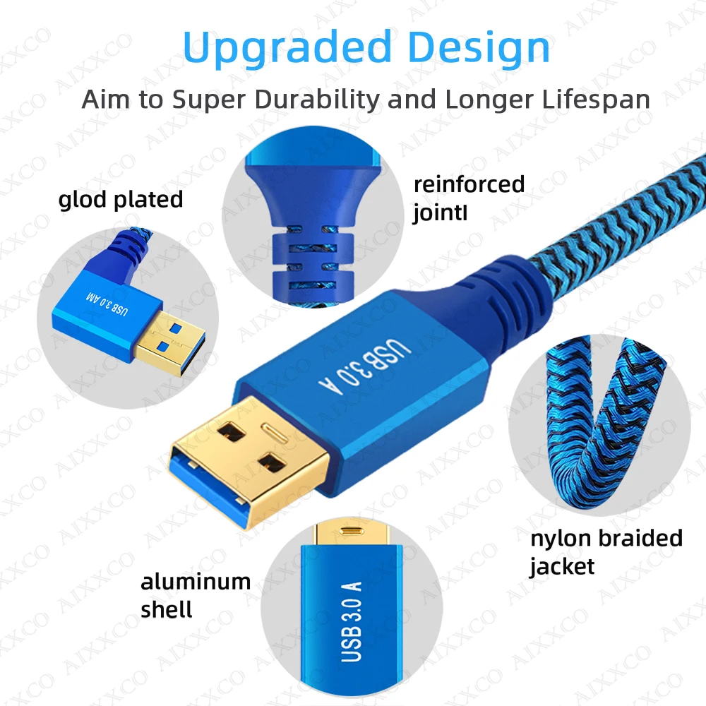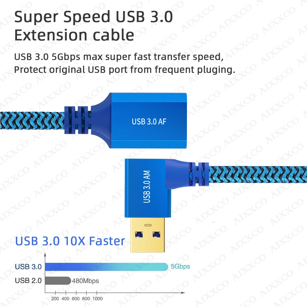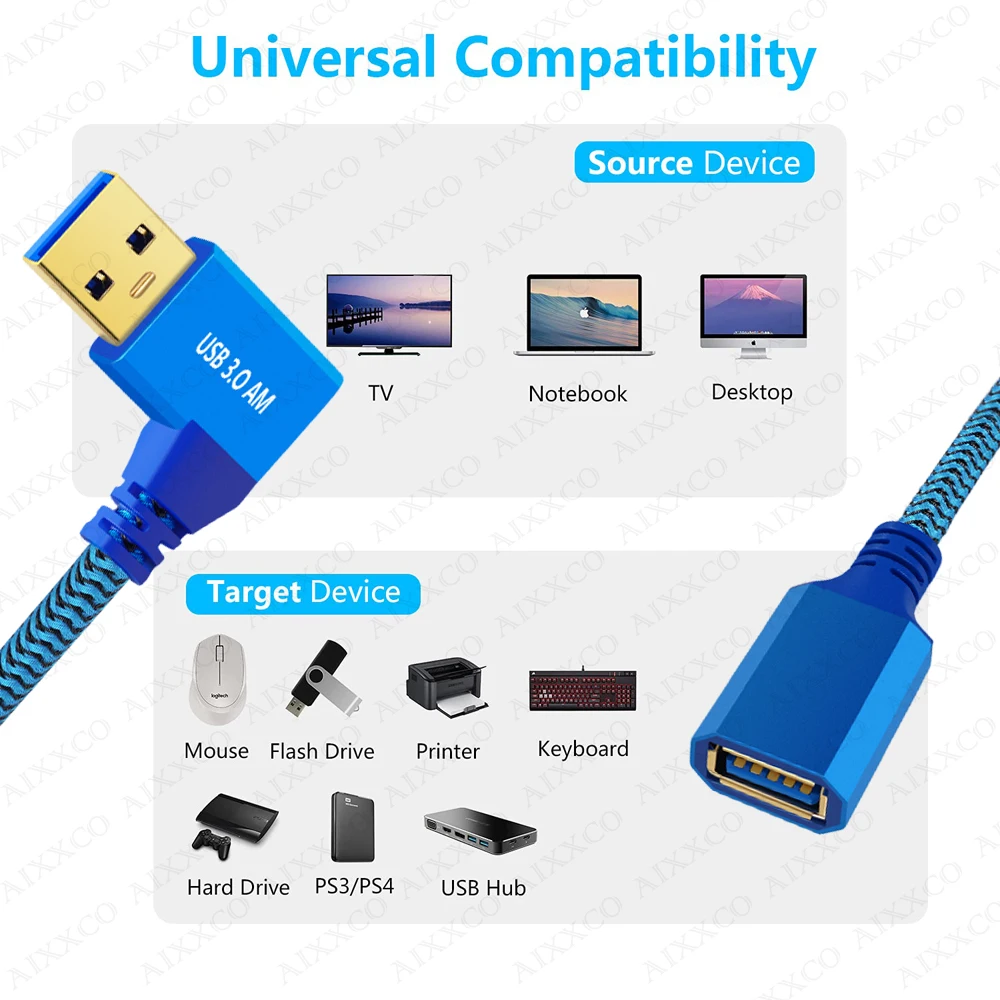 Comprar AIXXCO Cable de extensión USB 3.0 Cable macho a hembra Alta transferencia de datos Compatible con cámara web Teclado USB Unidad flash Disco duro