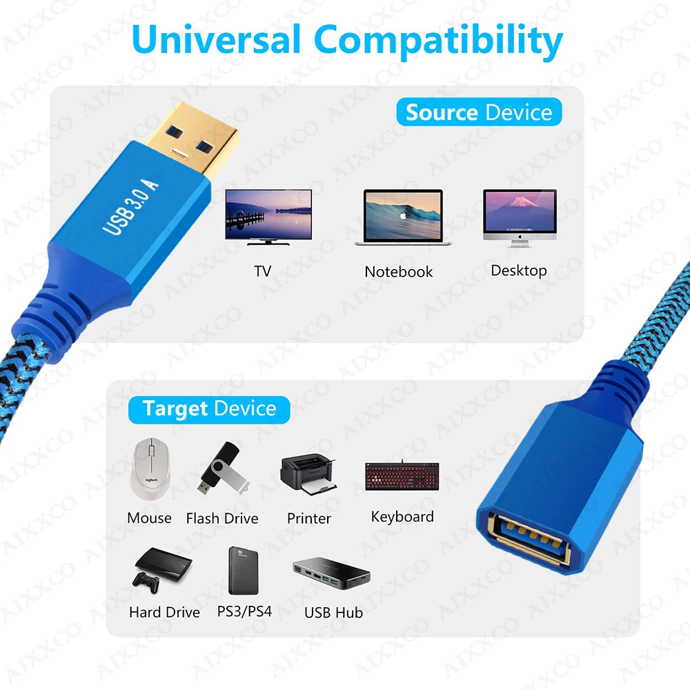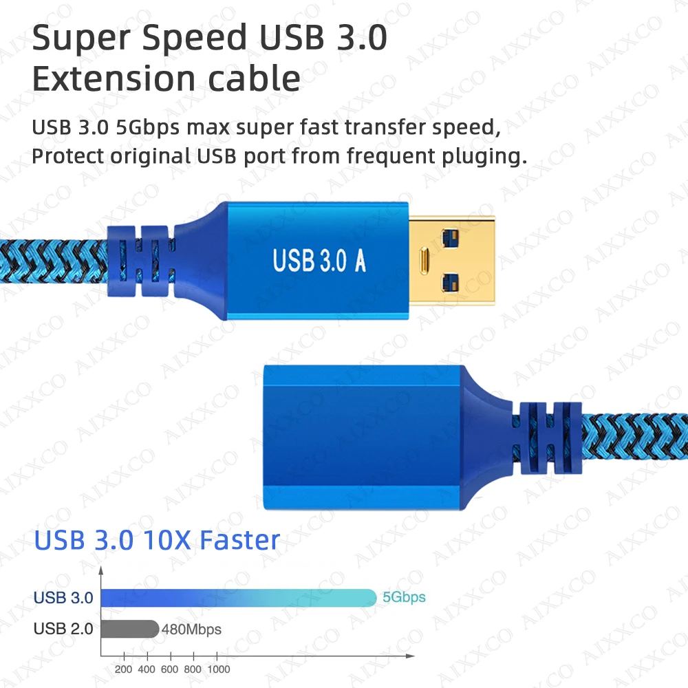Comprar AIXXCO Cable de extensión USB Cable extensor de datos USB 3,0 1M 2M para PC Smart TV Xbox One SSD extensión de Cable USB de velocidad rápida