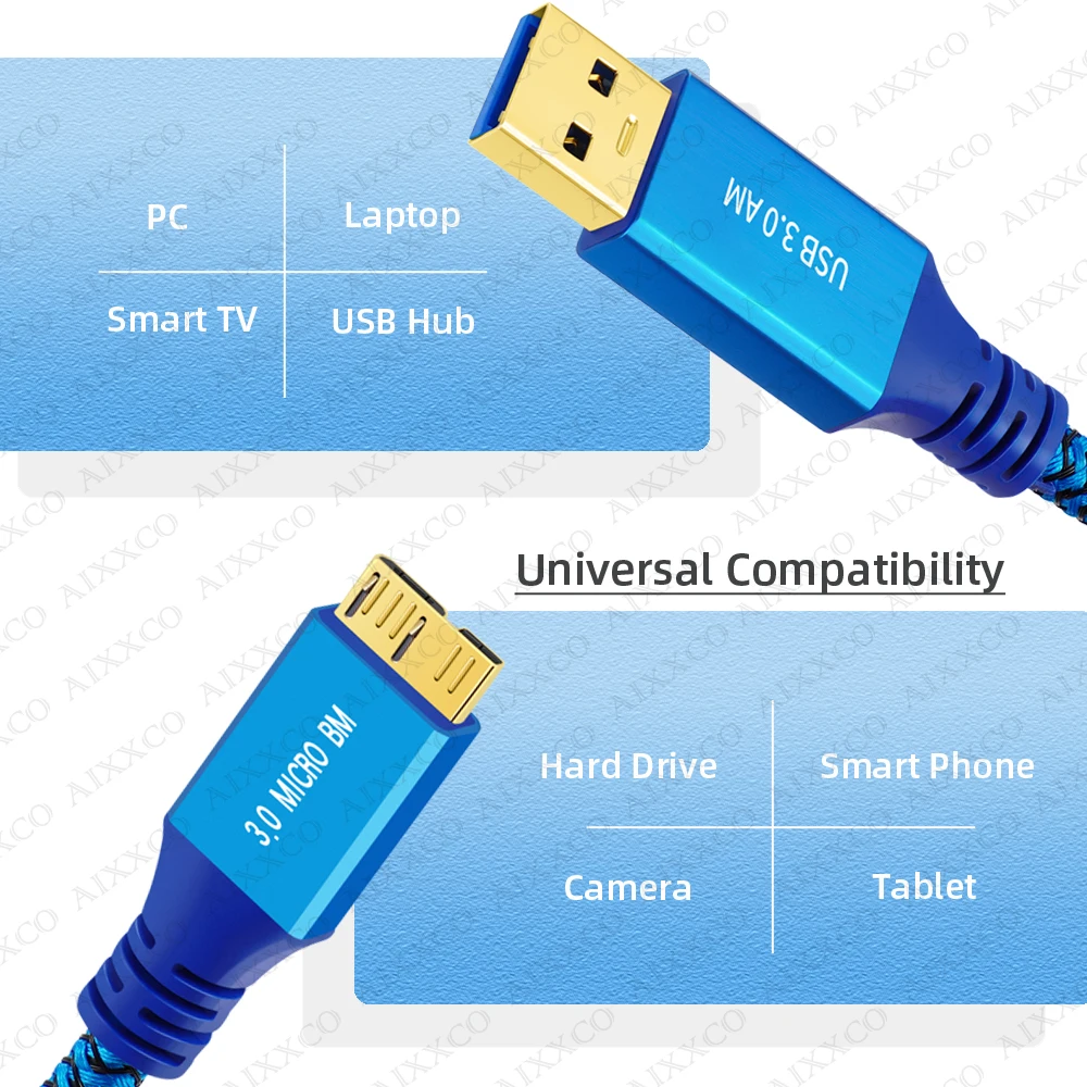 Compatibilidad universal: el cable USB 3.0 A a Micro B es compatible con Samsung Galaxy S5, Galaxy Note 3, Galaxy Note Pro 12.2, cámara Pentax y discos duros externos USB 3.0 portátiles.