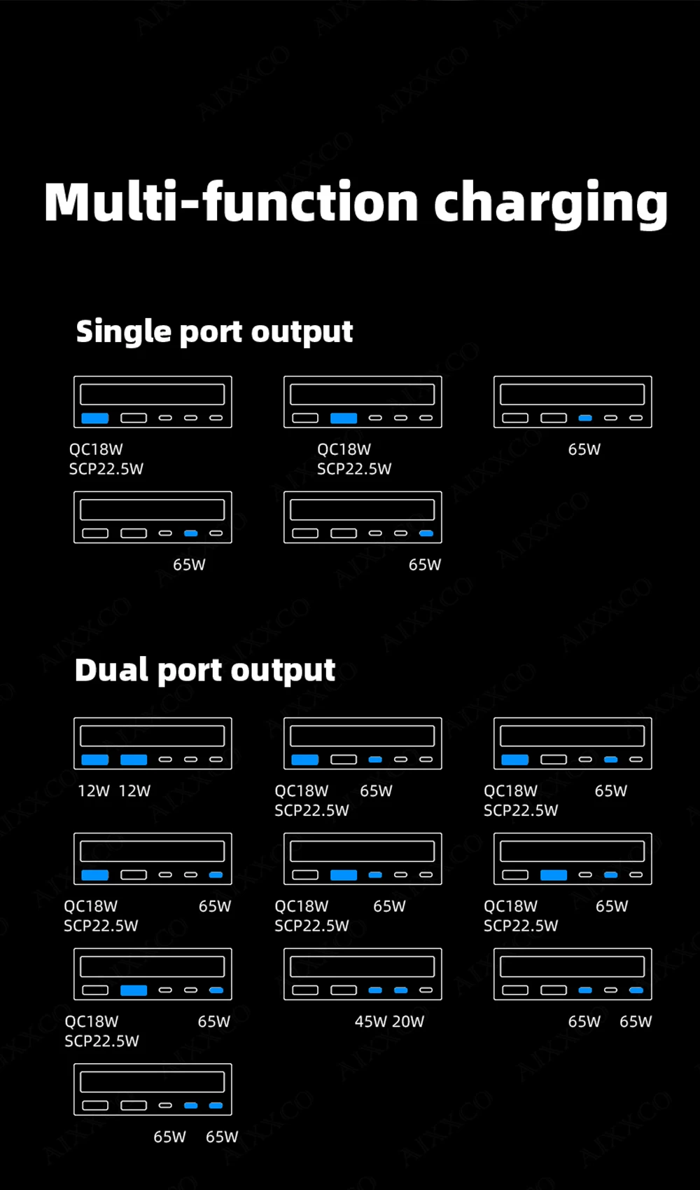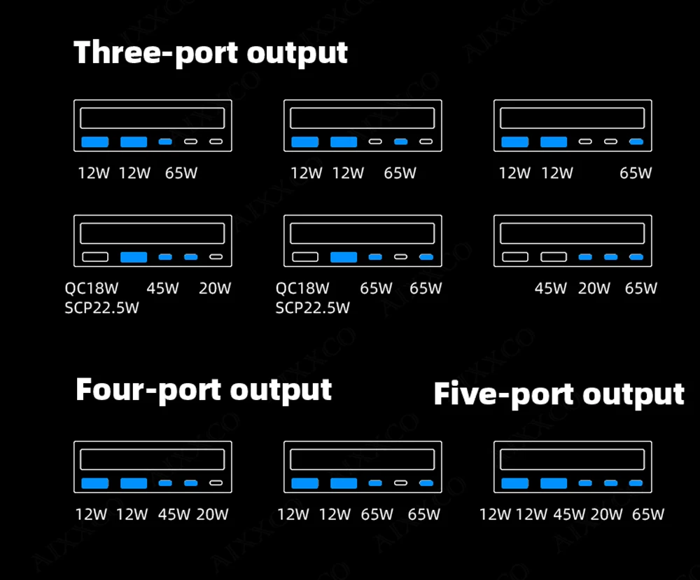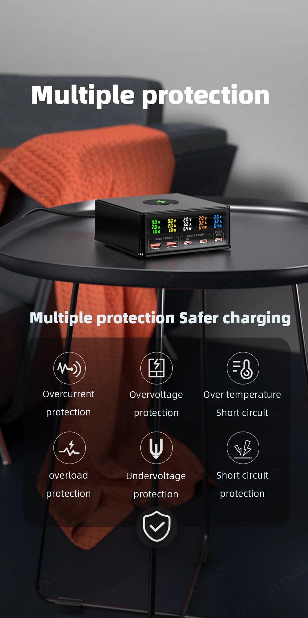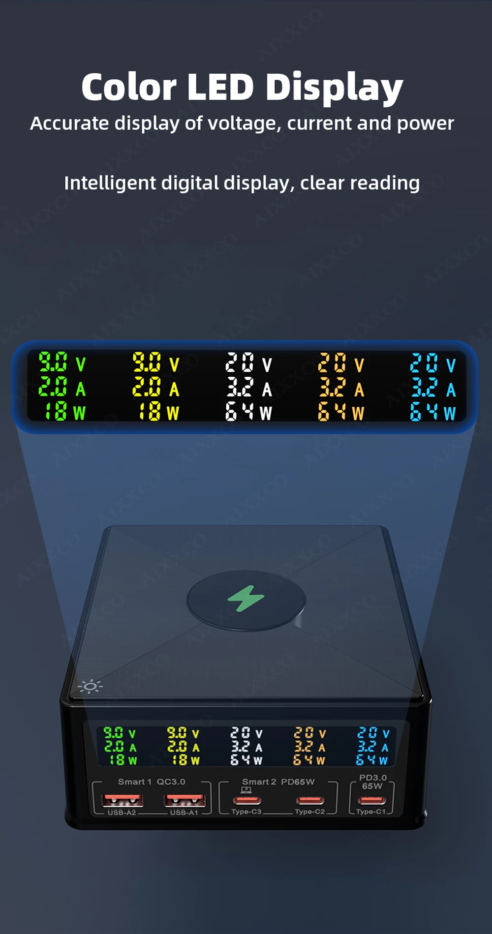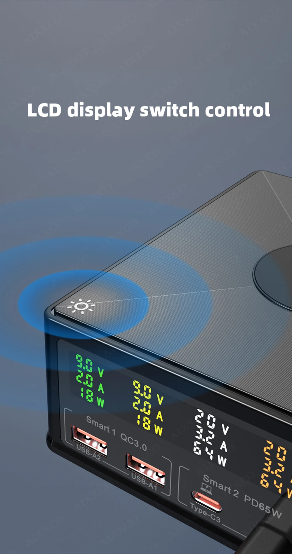 Comprar AIXXCO-estación de carga rápida para iPhone y portátil, cargador GaN de 160W, 3,0 tipo C, PD, USB, con 15W de carga inalámbrica