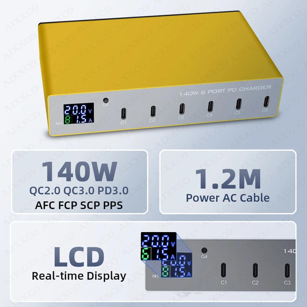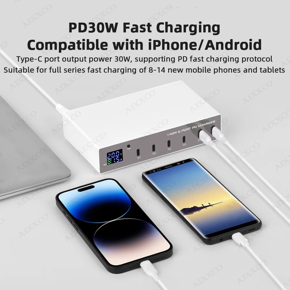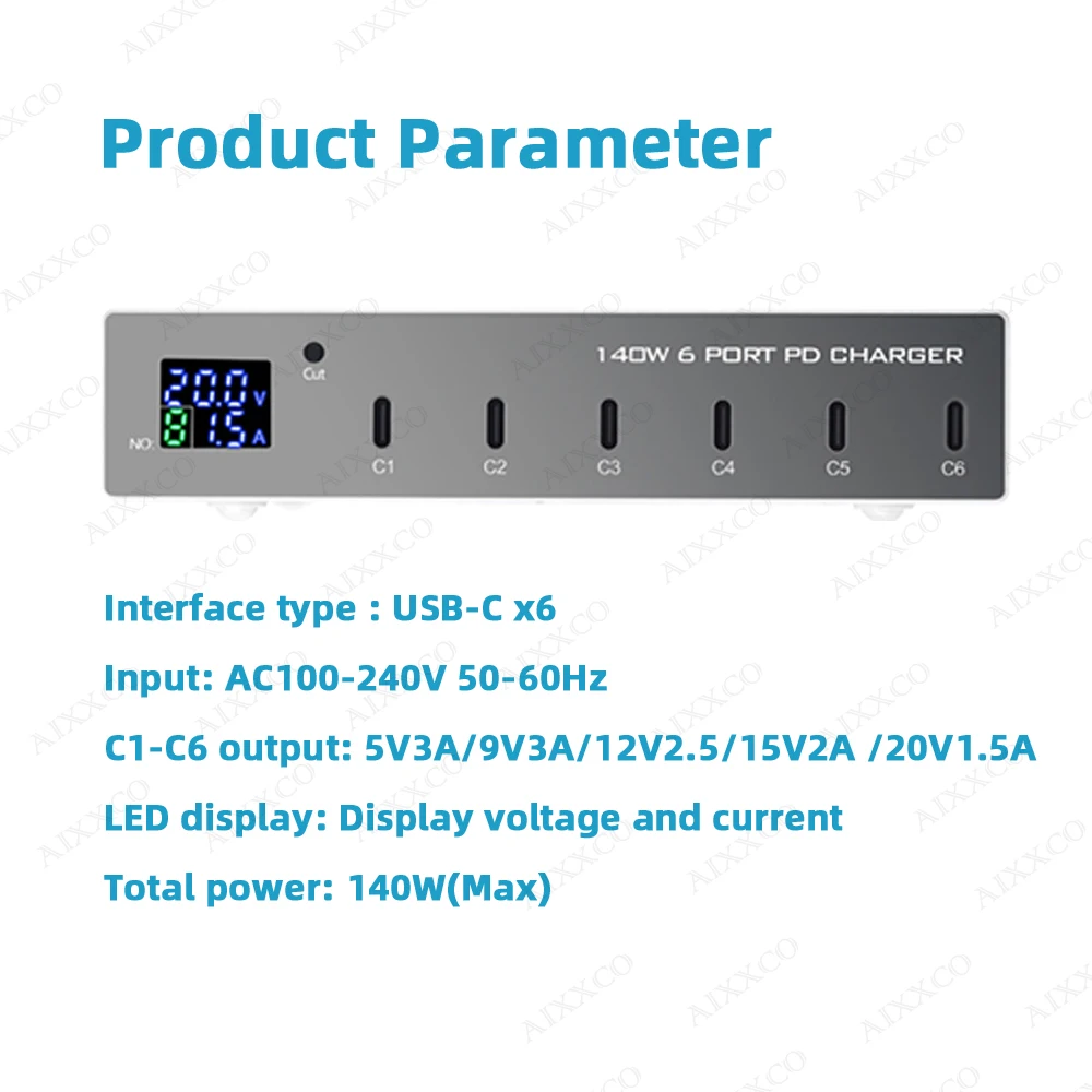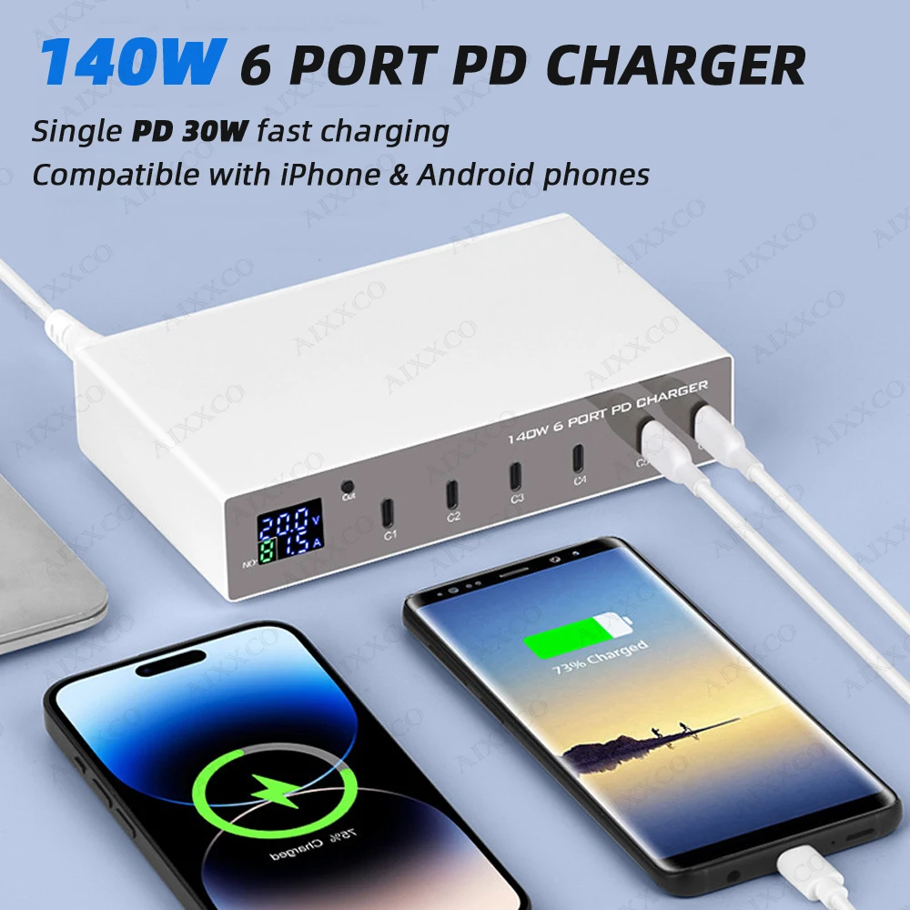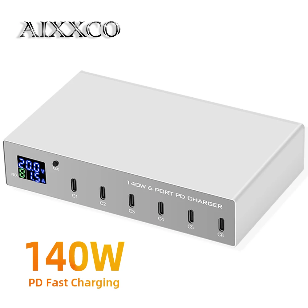 Comprar AIXXCO-estación de carga rápida para ordenador portátil, cargador de 140W, 6 en 1, PD, USB 3,0, tipo C, 30W