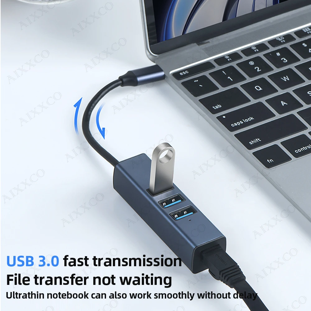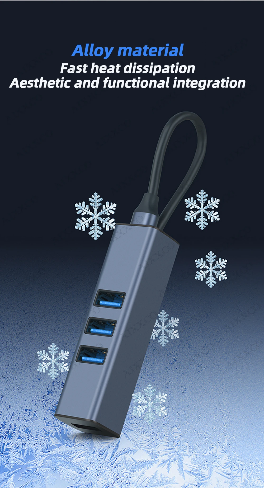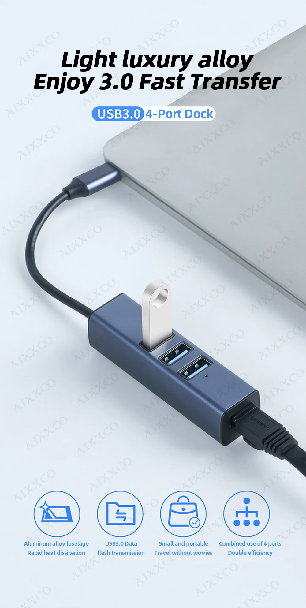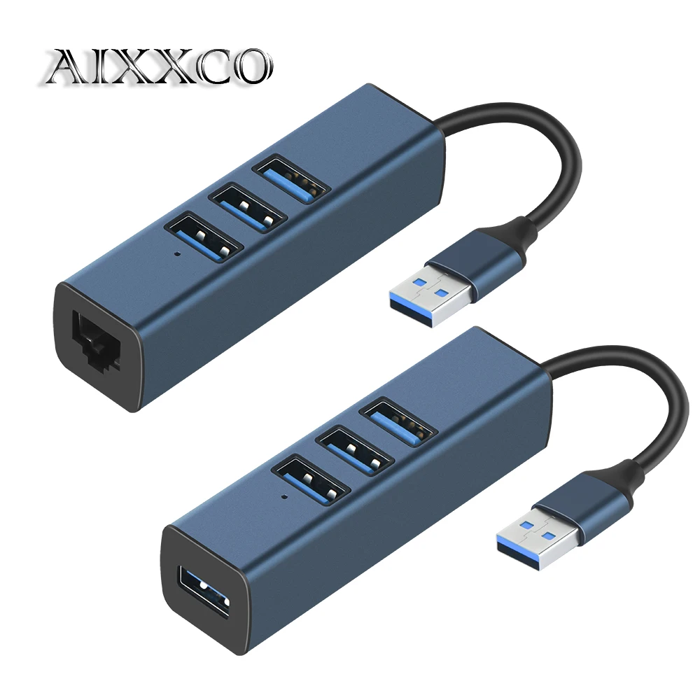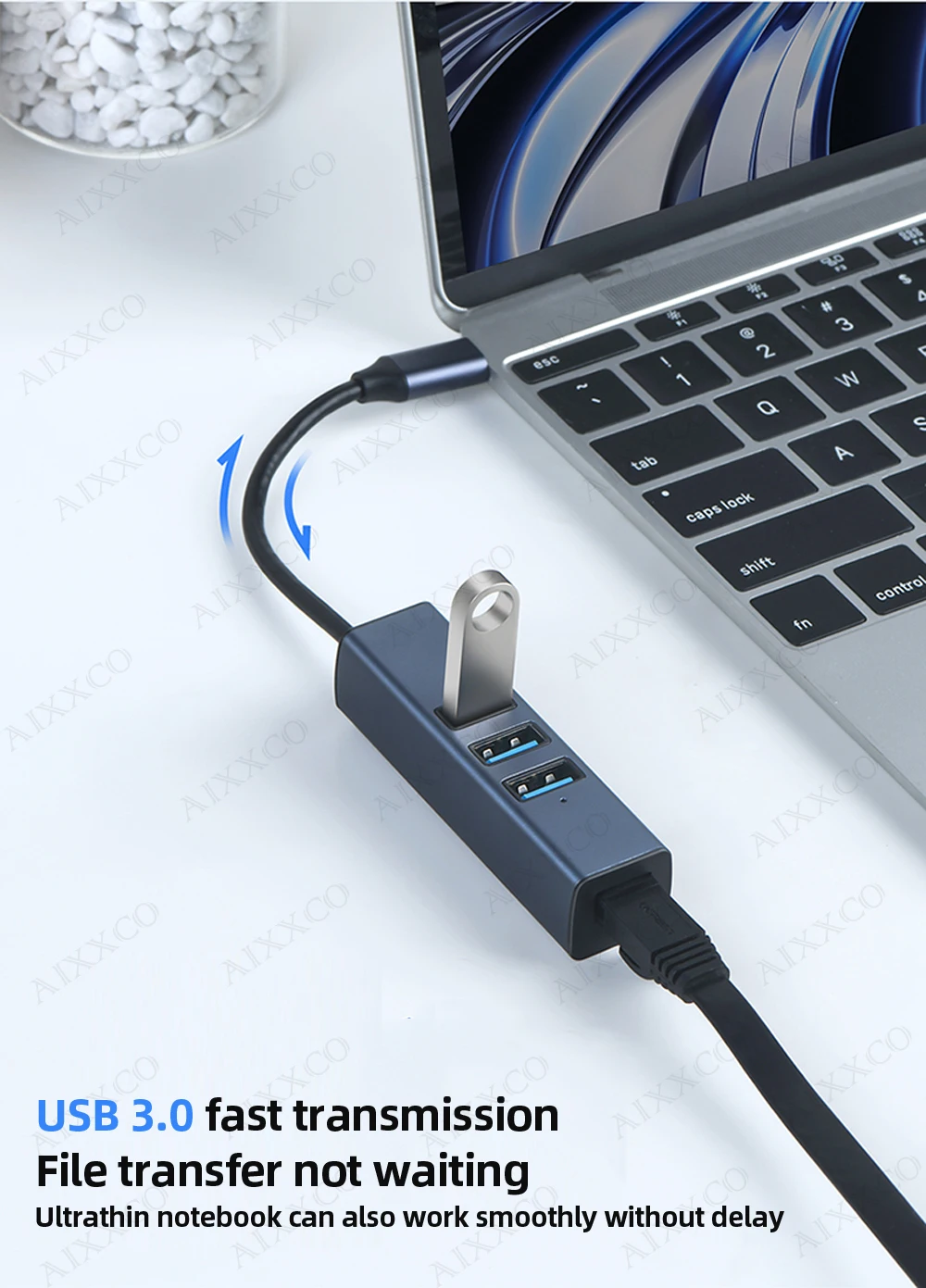 AIXXCO-HUB USB C de aleación de aluminio 3,0 tipo C 3,1, adaptador divisor múltiple de 4 puertos OTG con RJ45 para Xiaomi, Lenovo, Macbook, ordenador PC