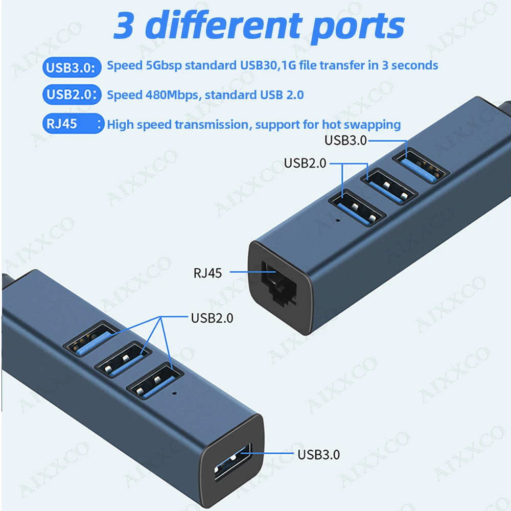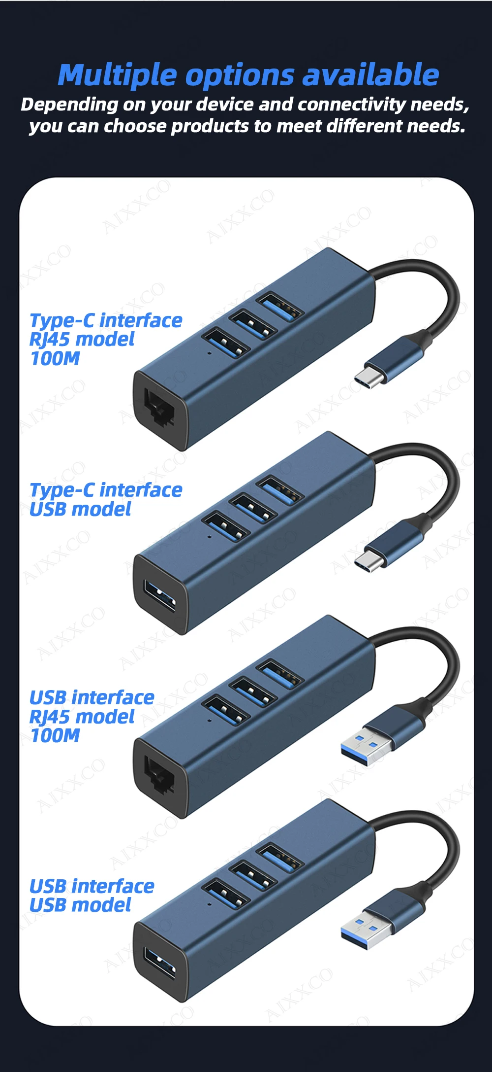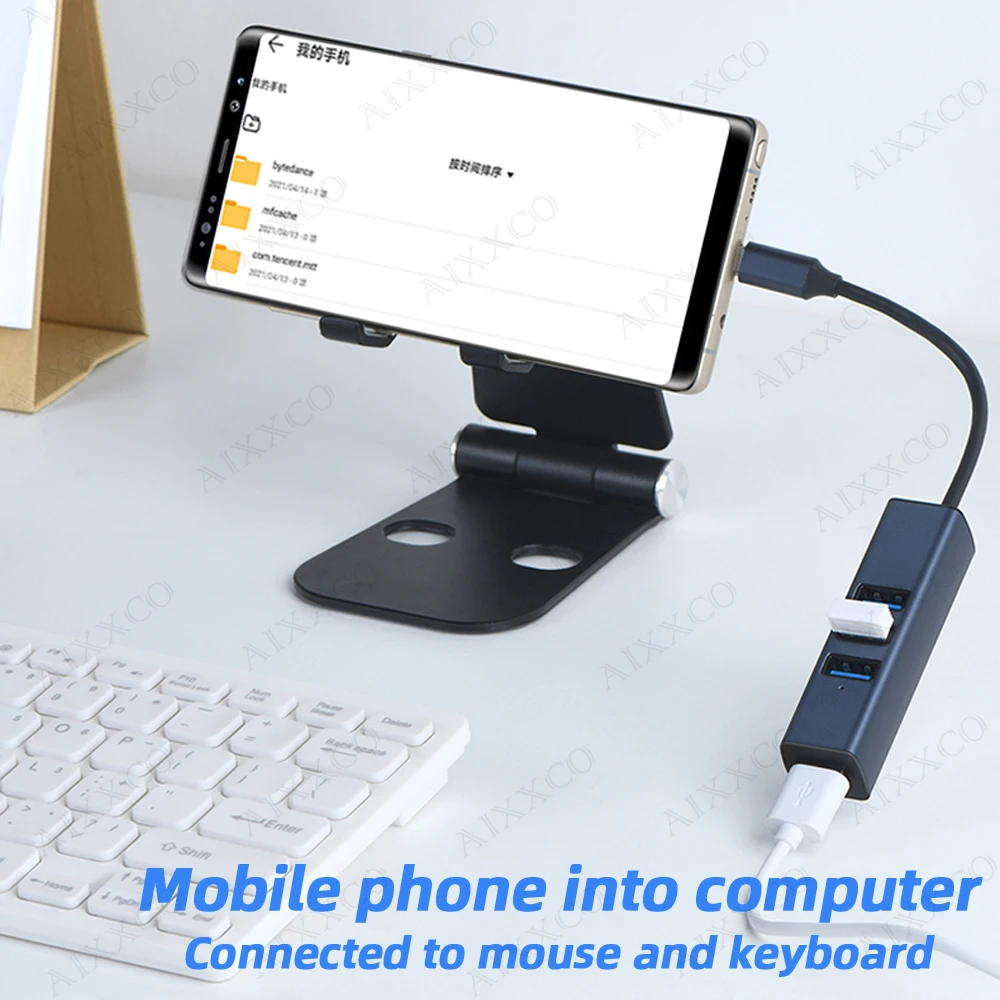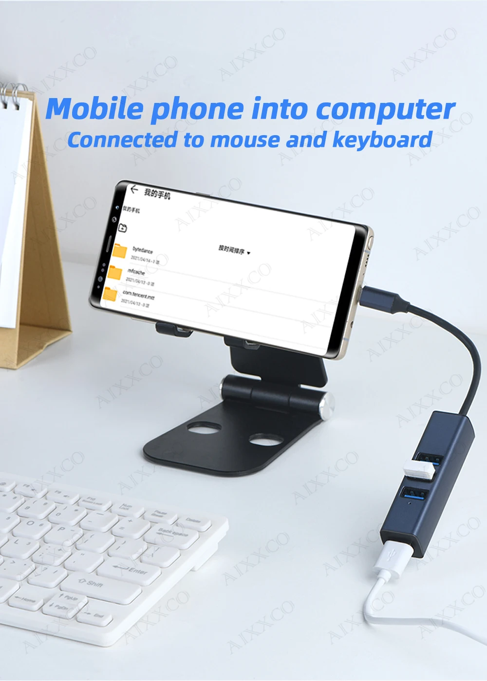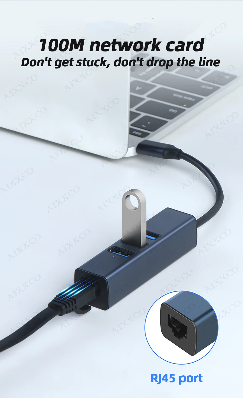 AIXXCO-HUB USB C de aleación de aluminio 3,0 tipo C 3,1, adaptador divisor múltiple de 4 puertos OTG con RJ45 para Xiaomi, Lenovo, Macbook, ordenador PC