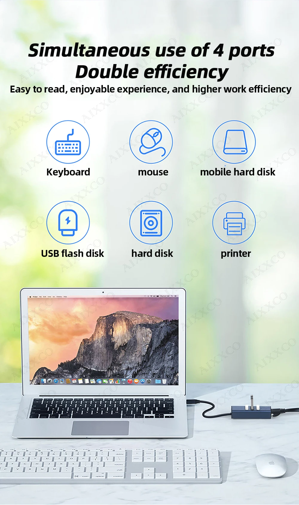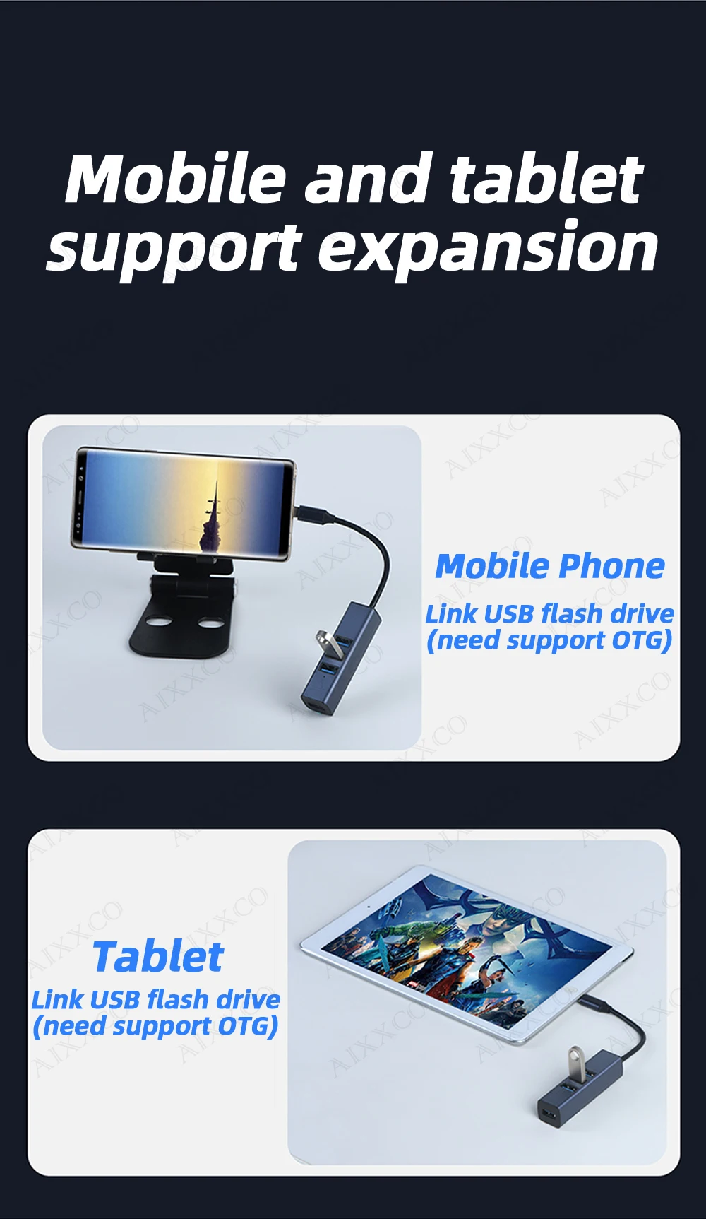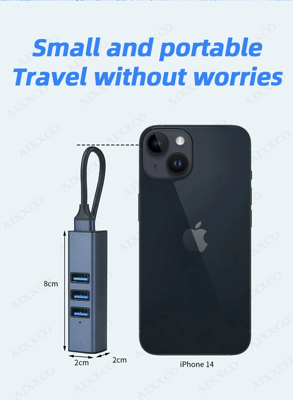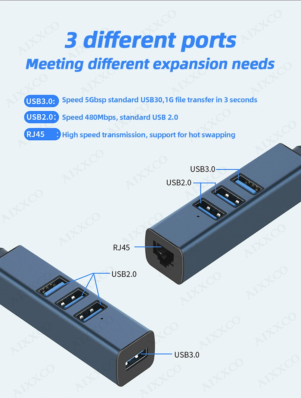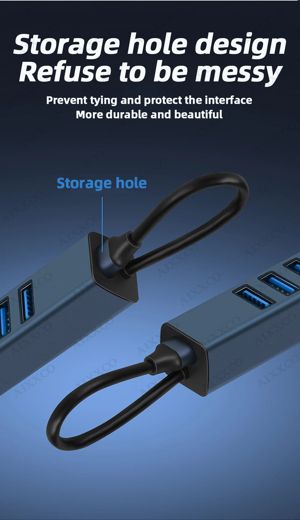 AIXXCO-HUB USB C de aleación de aluminio 3,0 tipo C 3,1, adaptador divisor múltiple de 4 puertos OTG con RJ45 para Xiaomi, Lenovo, Macbook, ordenador PC