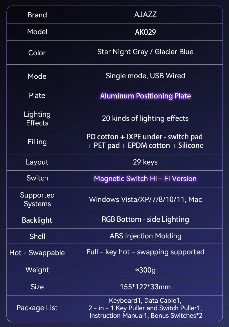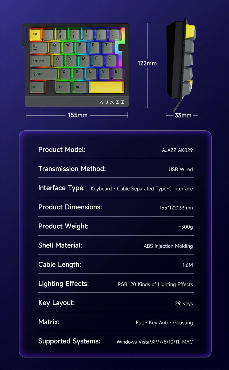 AJAZZ AK029 Teclado para juegos con una sola mano, interruptor magnético con cable de 8000Hz, teclado mecánico RGB de disparo rápido para jugadores de PC e-sports