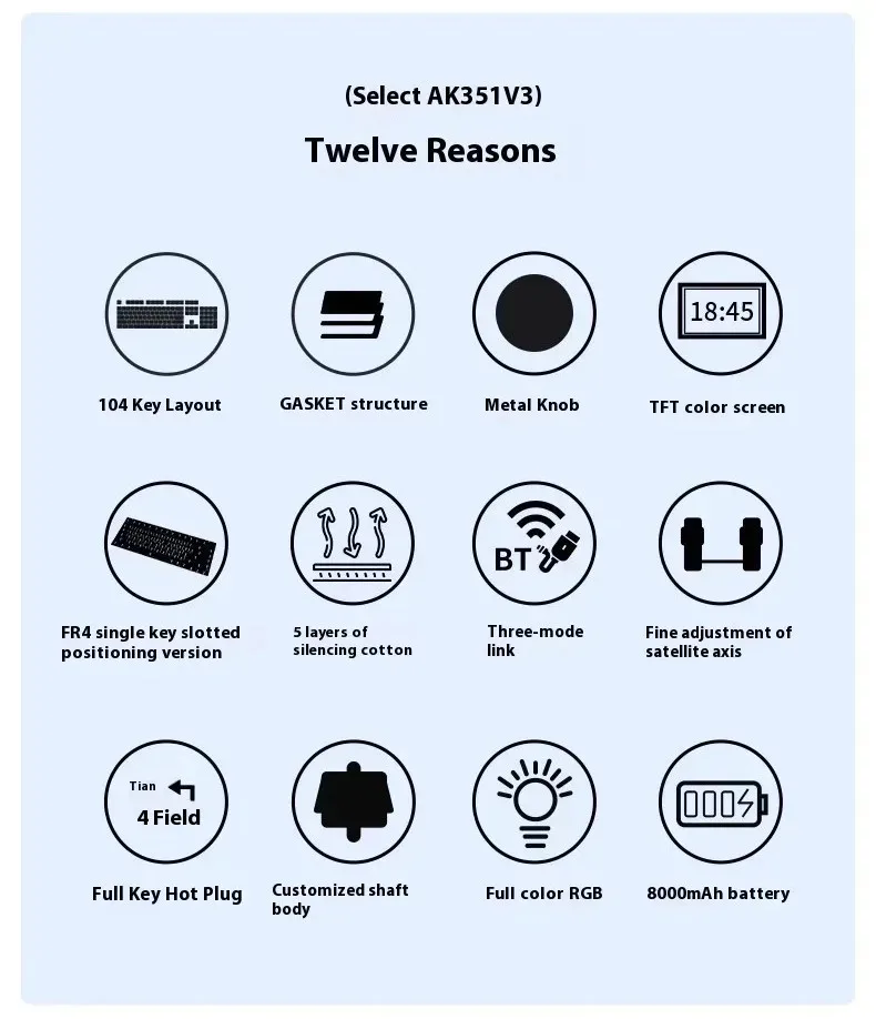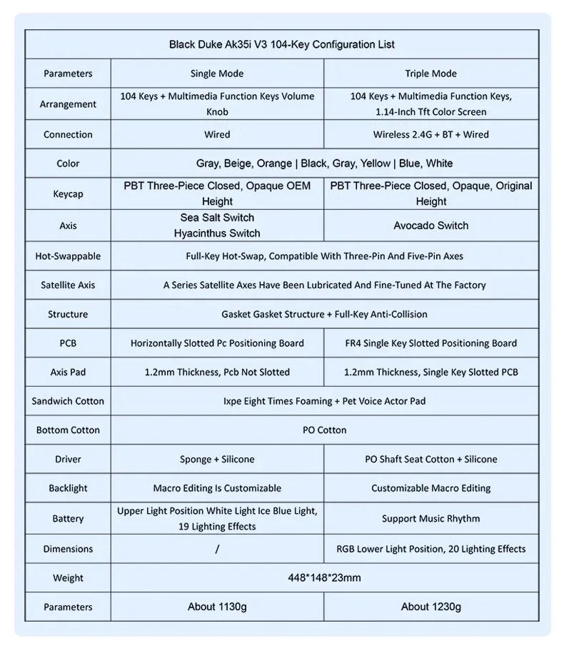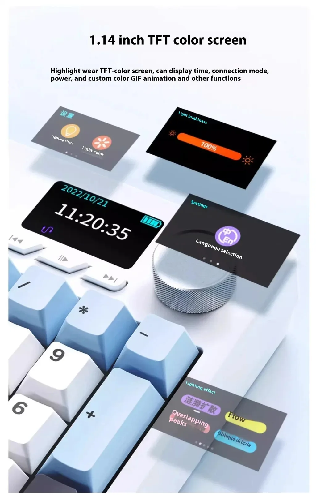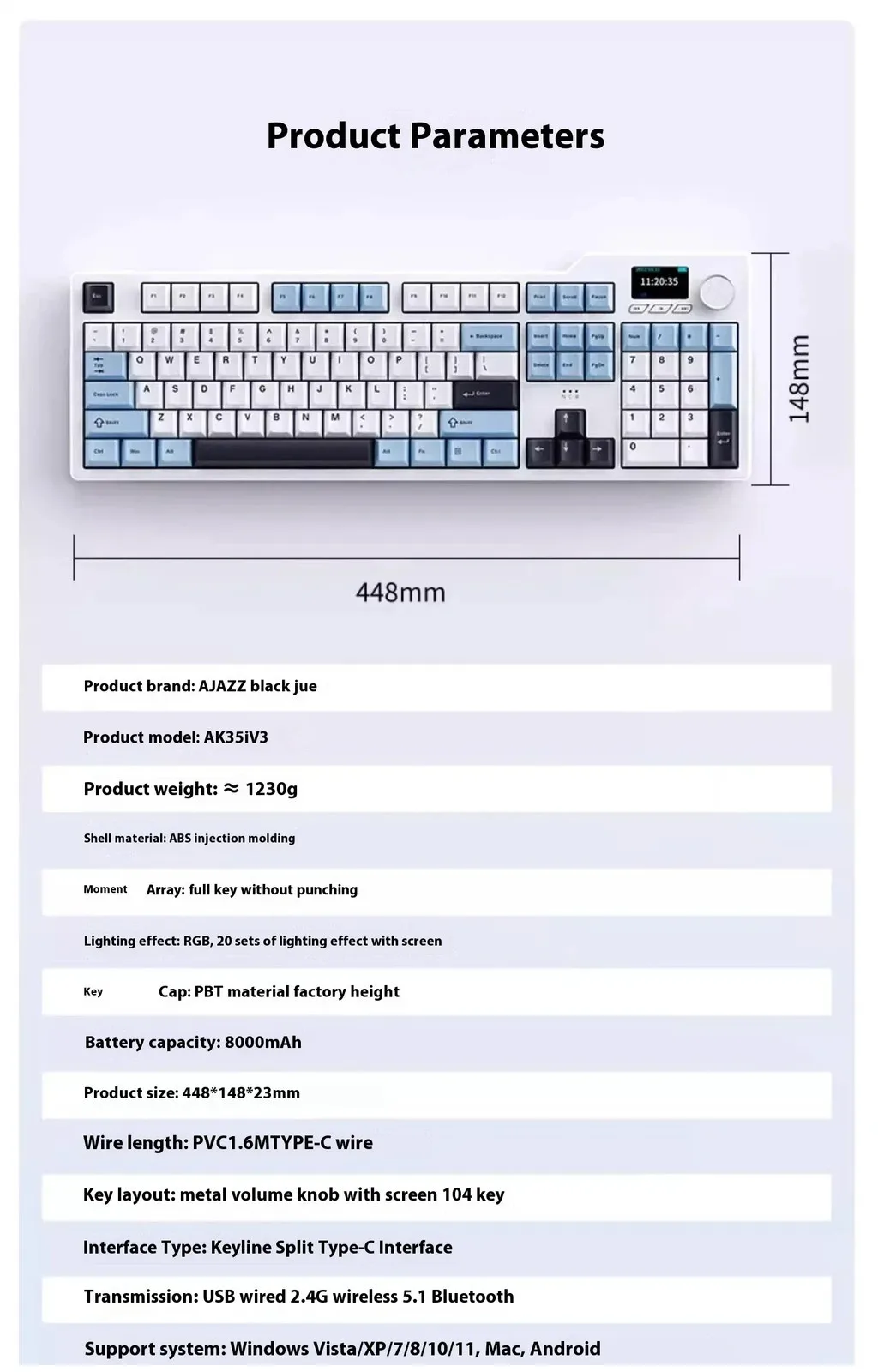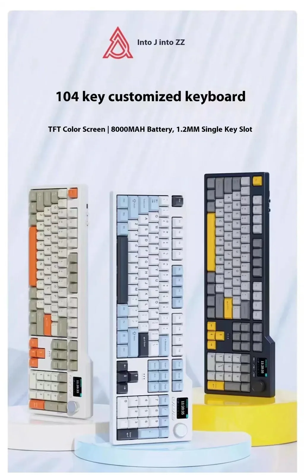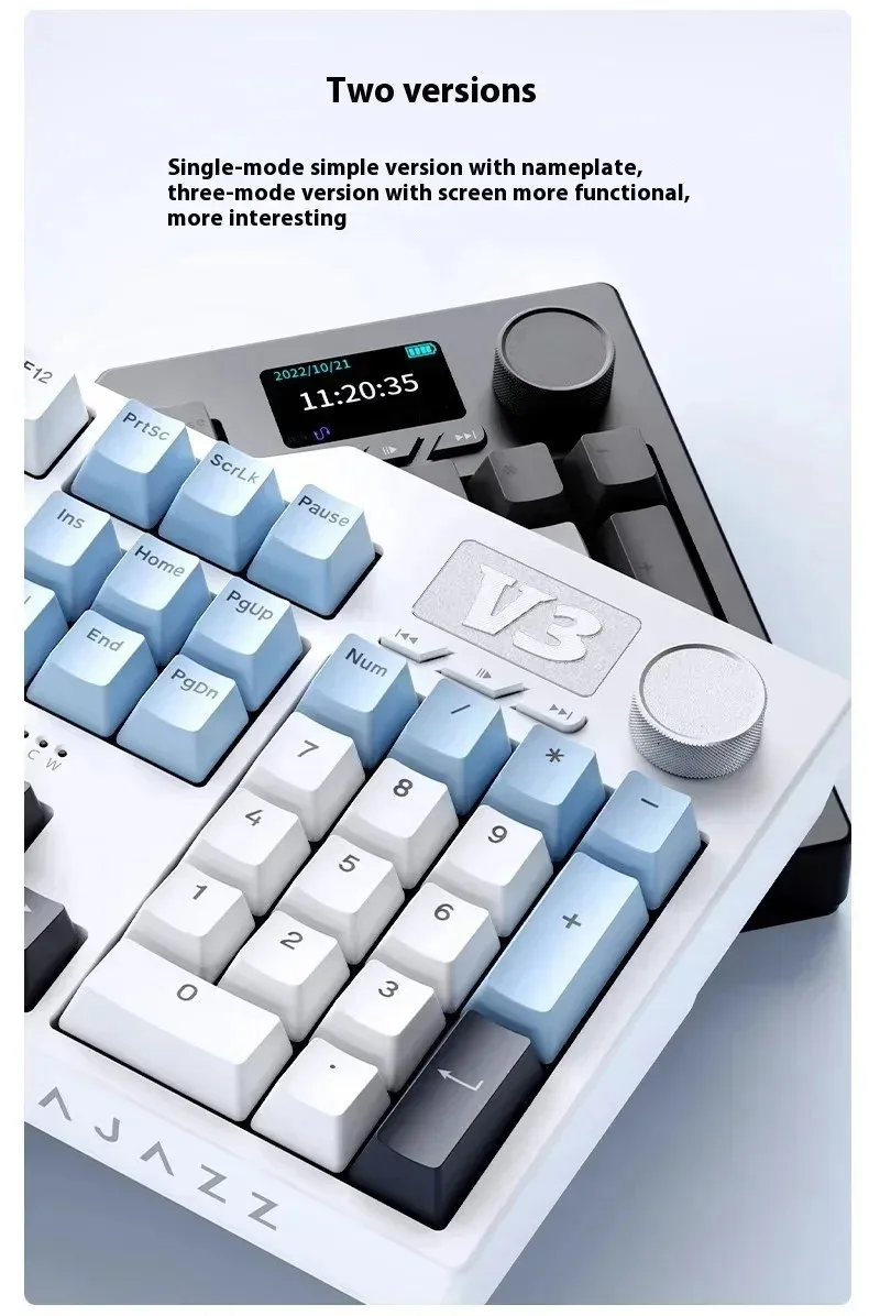 AJAZZ AK35i V3 Teclado mecánico con cable y inalámbrico 104 teclas Fulsize intercambiable en caliente con perilla y pantalla para juegos y oficina
