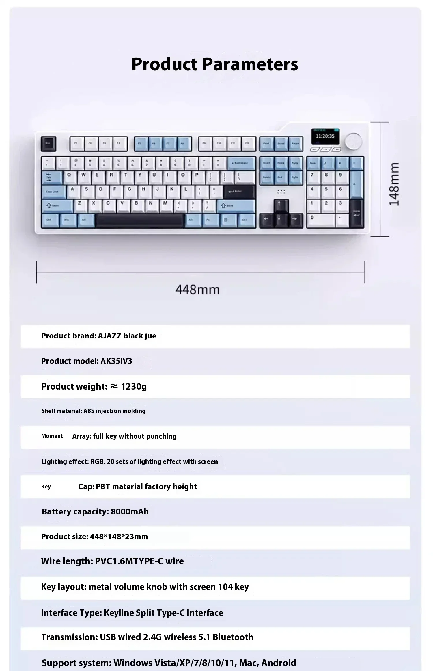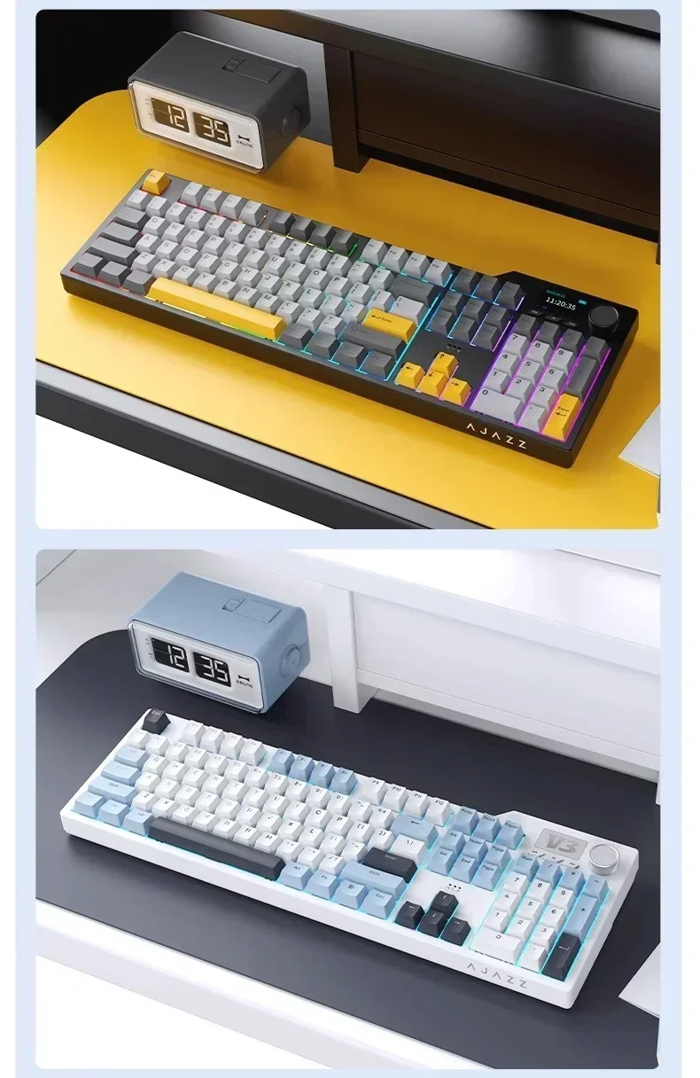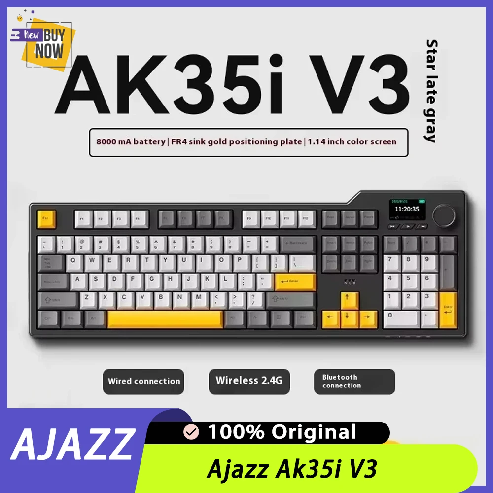 Comprar Ajazz Ak35i V3 Teclado mecánico multimodo Bluetooth interruptor de perilla inalámbrico teclado para juegos con pantalla PC Gamer ordenador regalo