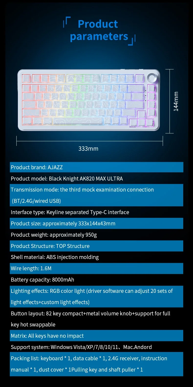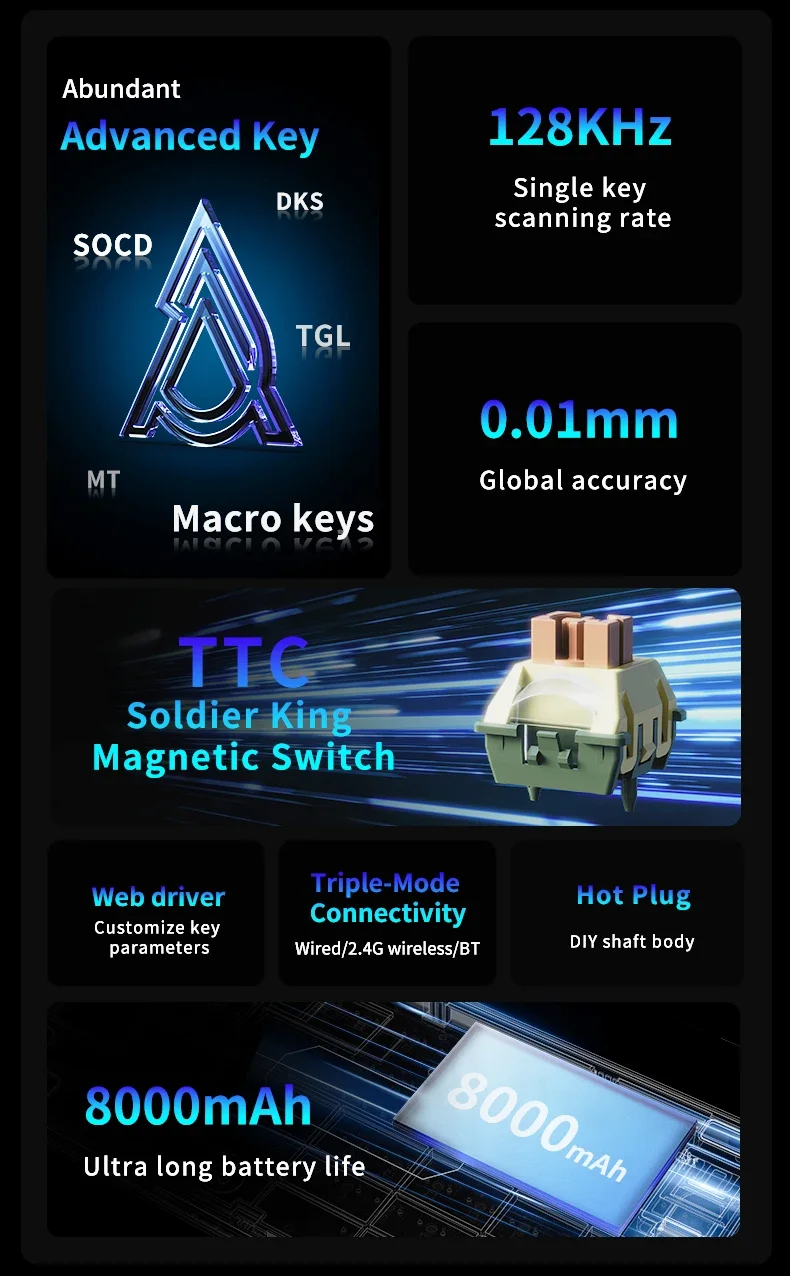 Ajazz Ak820 Max Ultra magnético interruptor teclado mecánico 8k 128khz 0.01mm RGB personalizado inalámbrico Gaming Keybaord E-Sports caliente