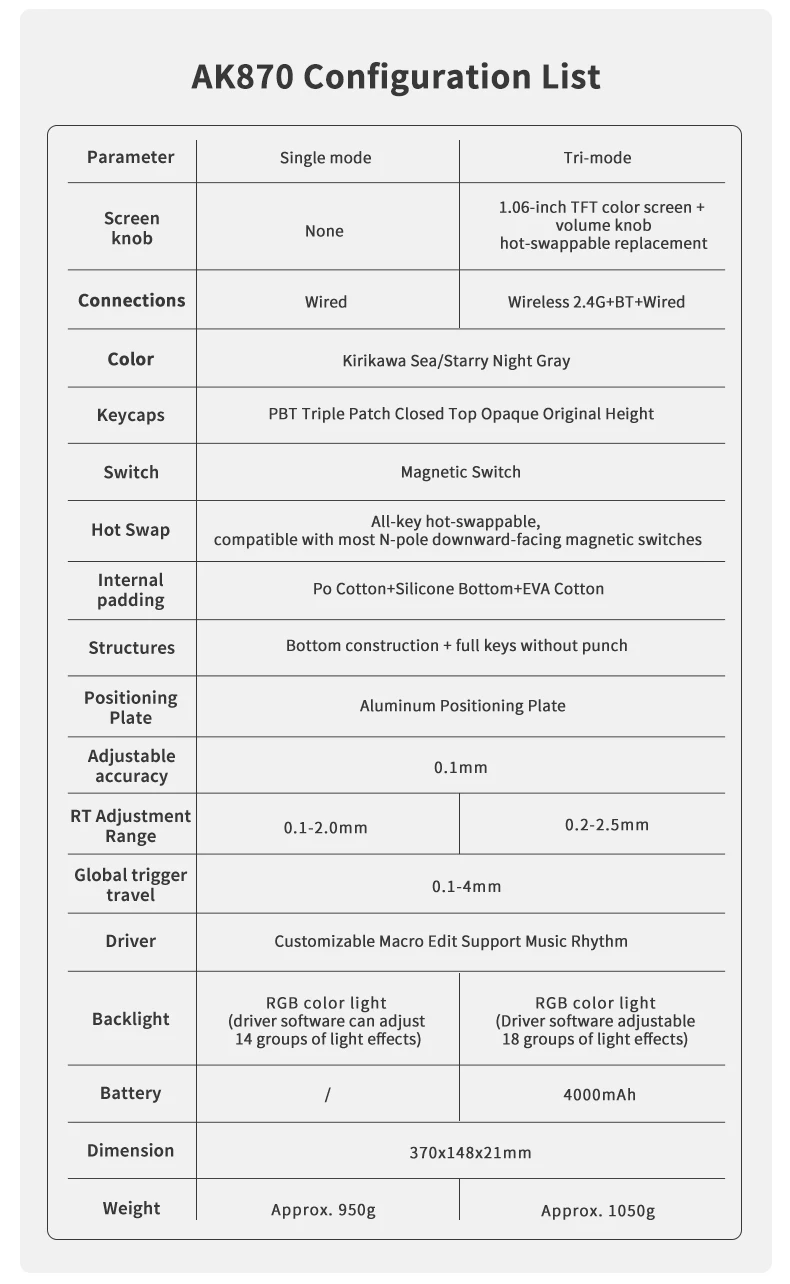 Ajazz AK870 interruptor magnético Teclado inalámbrico mecánico para juegos RGB tecla completa DIY teclado de eje magnético de intercambio en caliente para ordenador portátil y PC