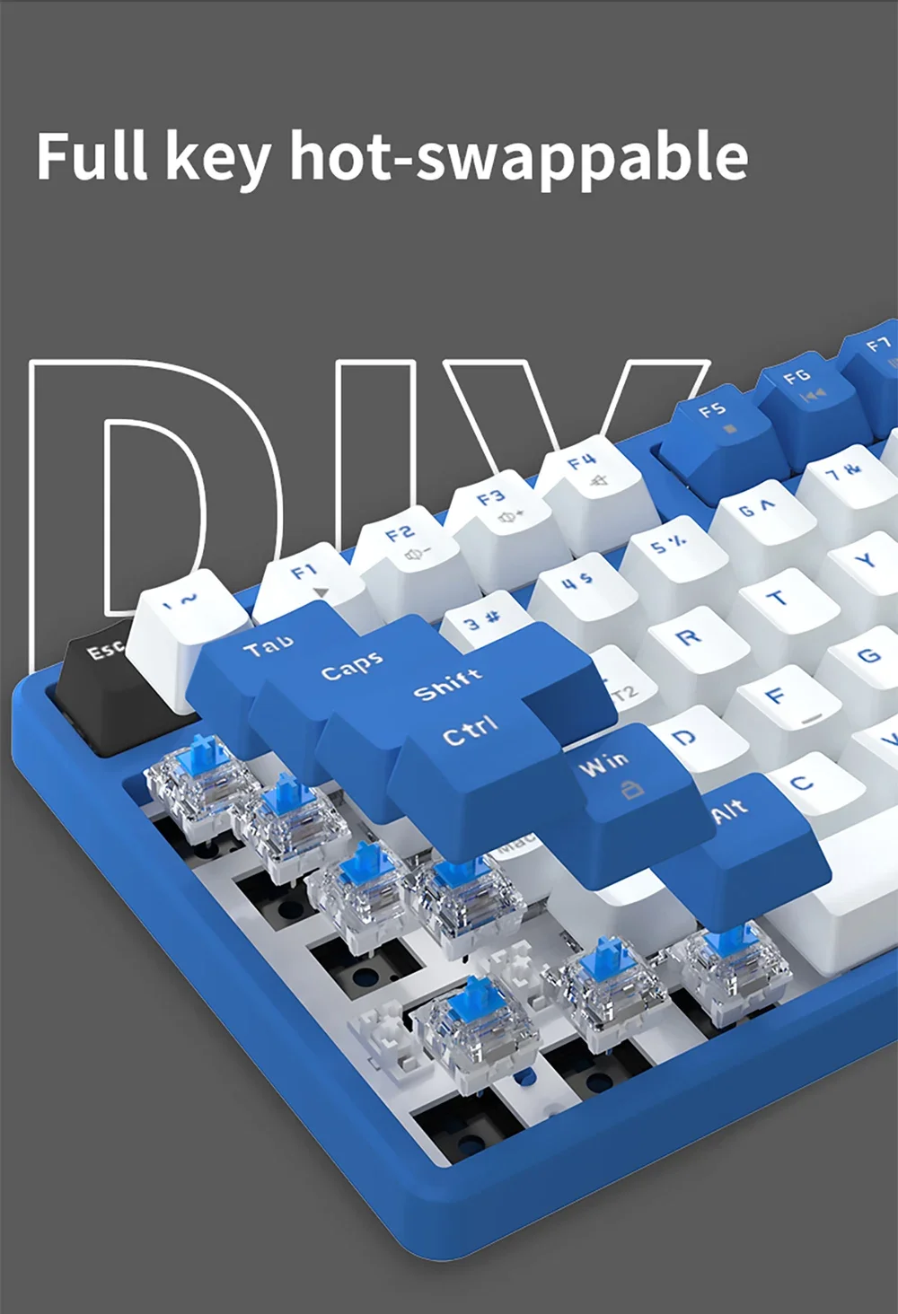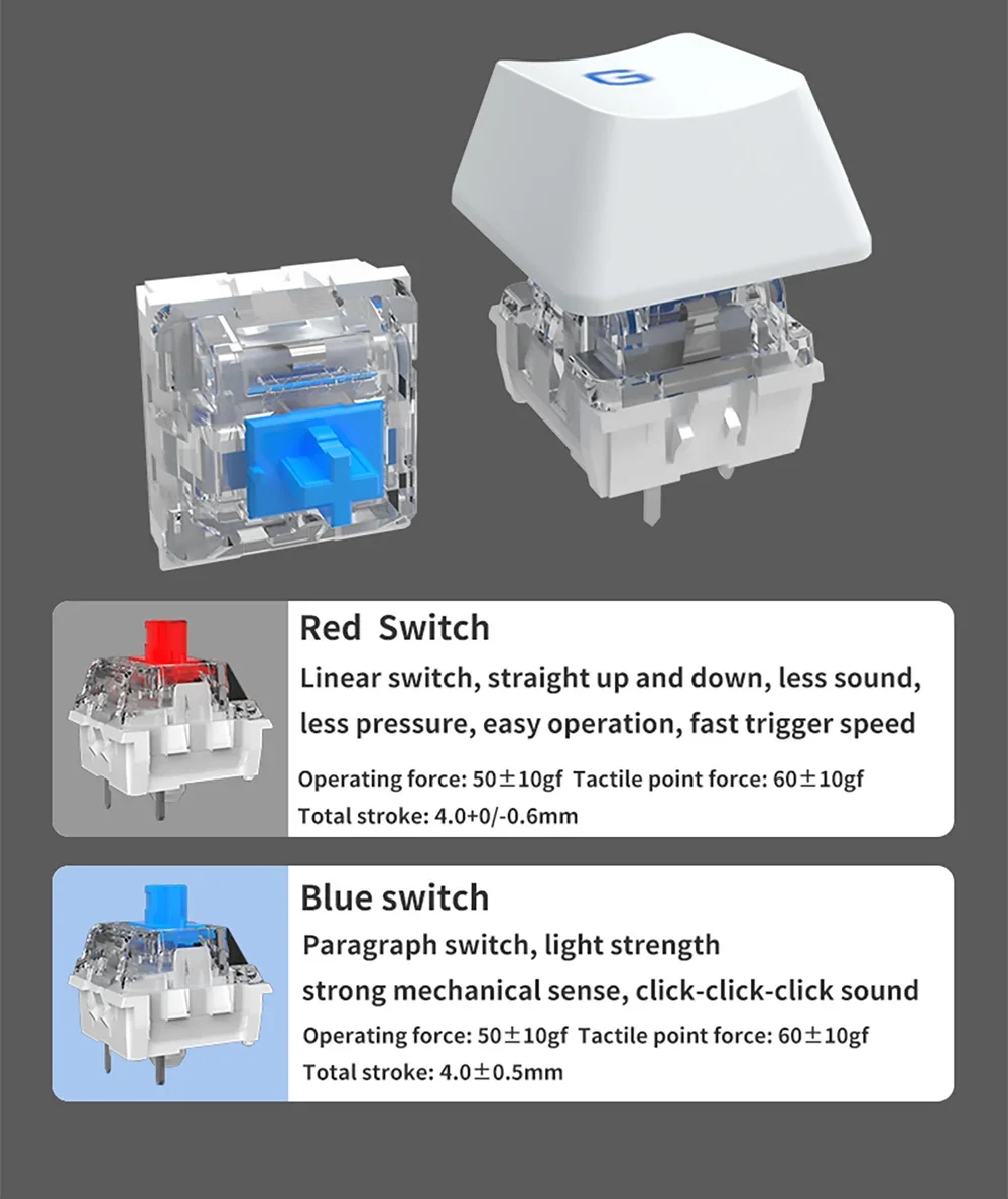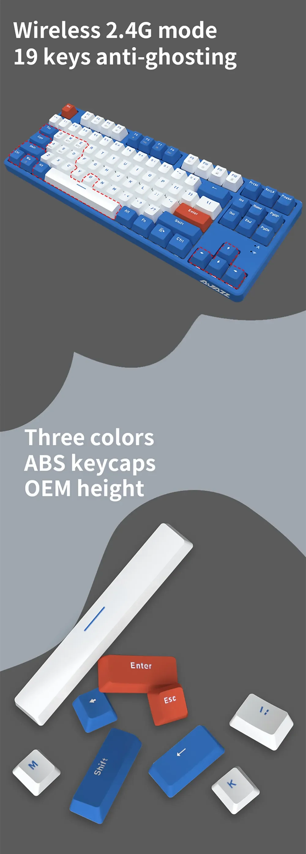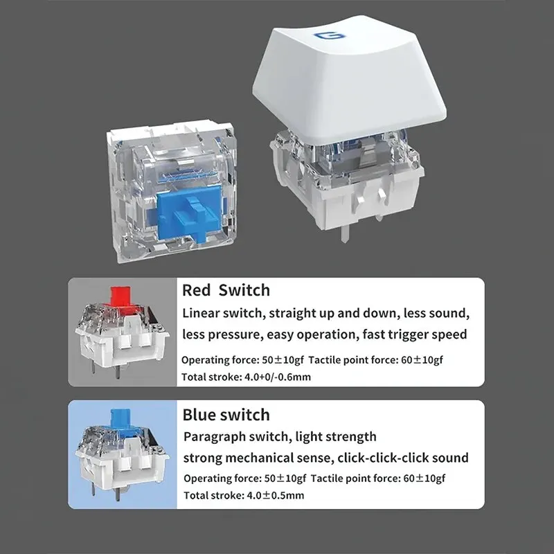 Es un precio bastante bajo por un teclado mecánico. La apariencia y la sensación son baratas. Después de la compra llegó rápidamente, lo cual fue genial. Lo malo es que la caja exterior estaba desgastada. ¡Y lo peor es el color! Las fotos en las tiendas son azules en cada tienda, ¡pero en realidad es casi azul claro! En comparación con los de las fotos de la tienda, me parece genial. Puede parecer una exageración, pero el problema del color por sí solo significaré que nunca usaré este teclado en el futuro. Es realmente una vergüenza. Si estás pensando en comprar, te recomiendo encarecidamente comprobar la reseña de la foto.