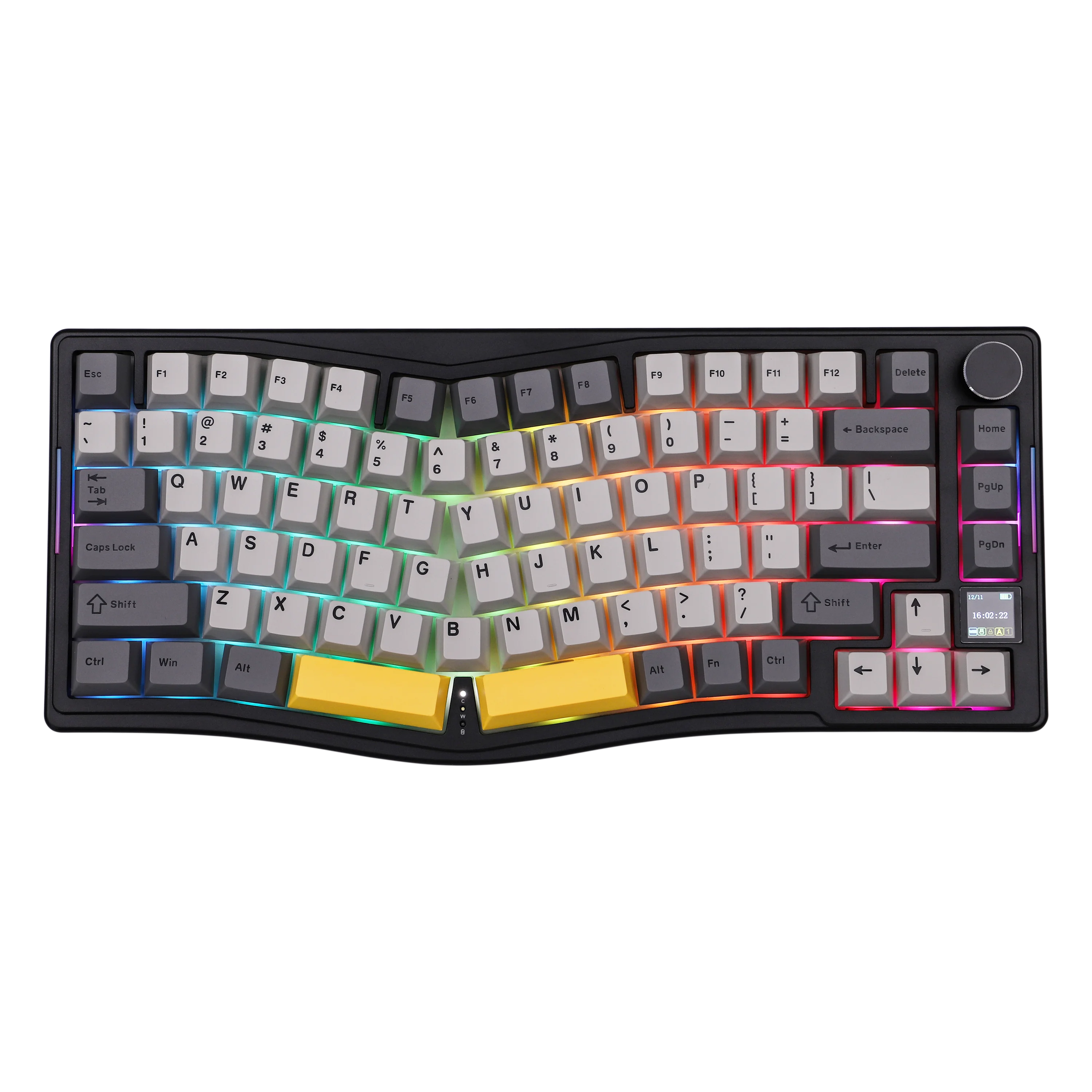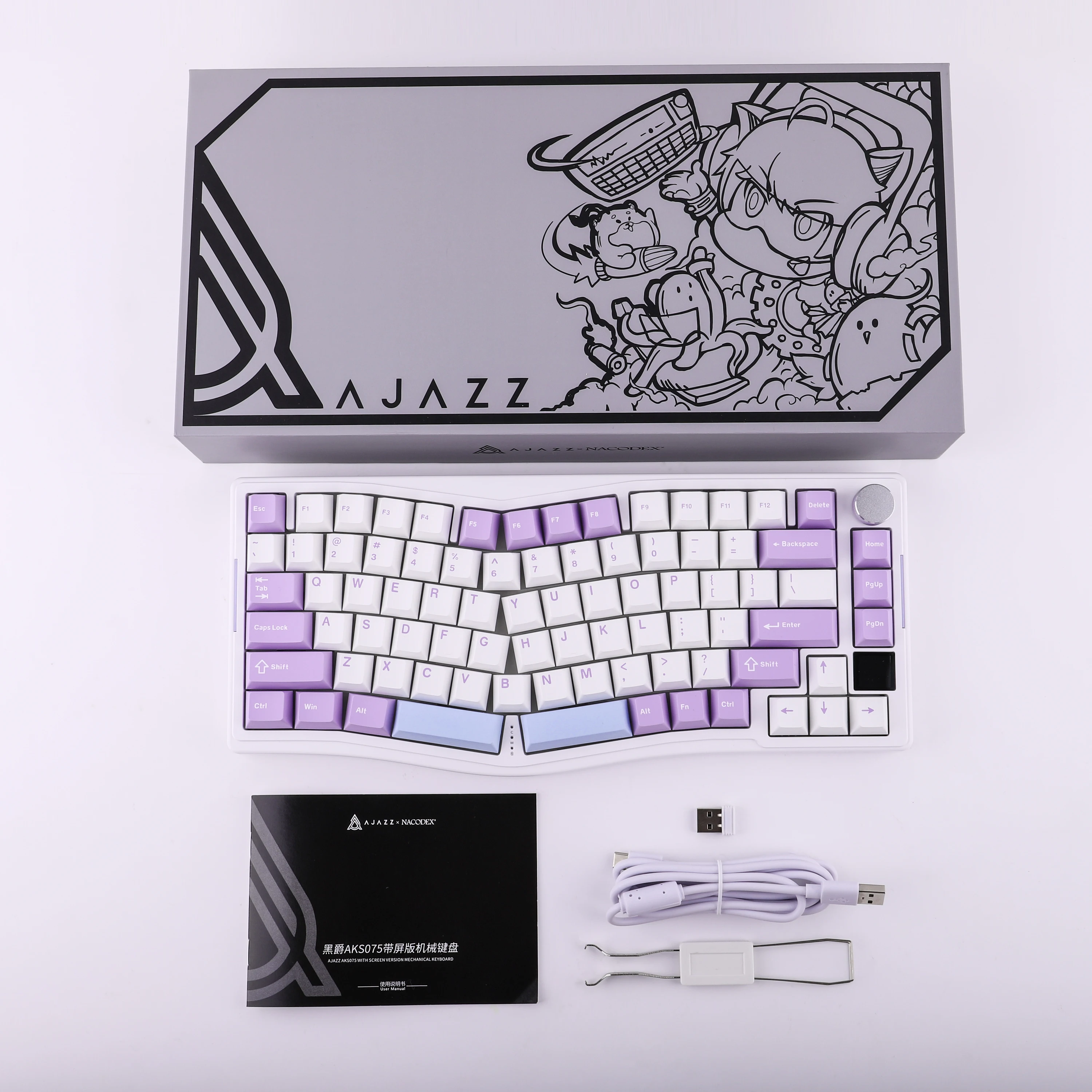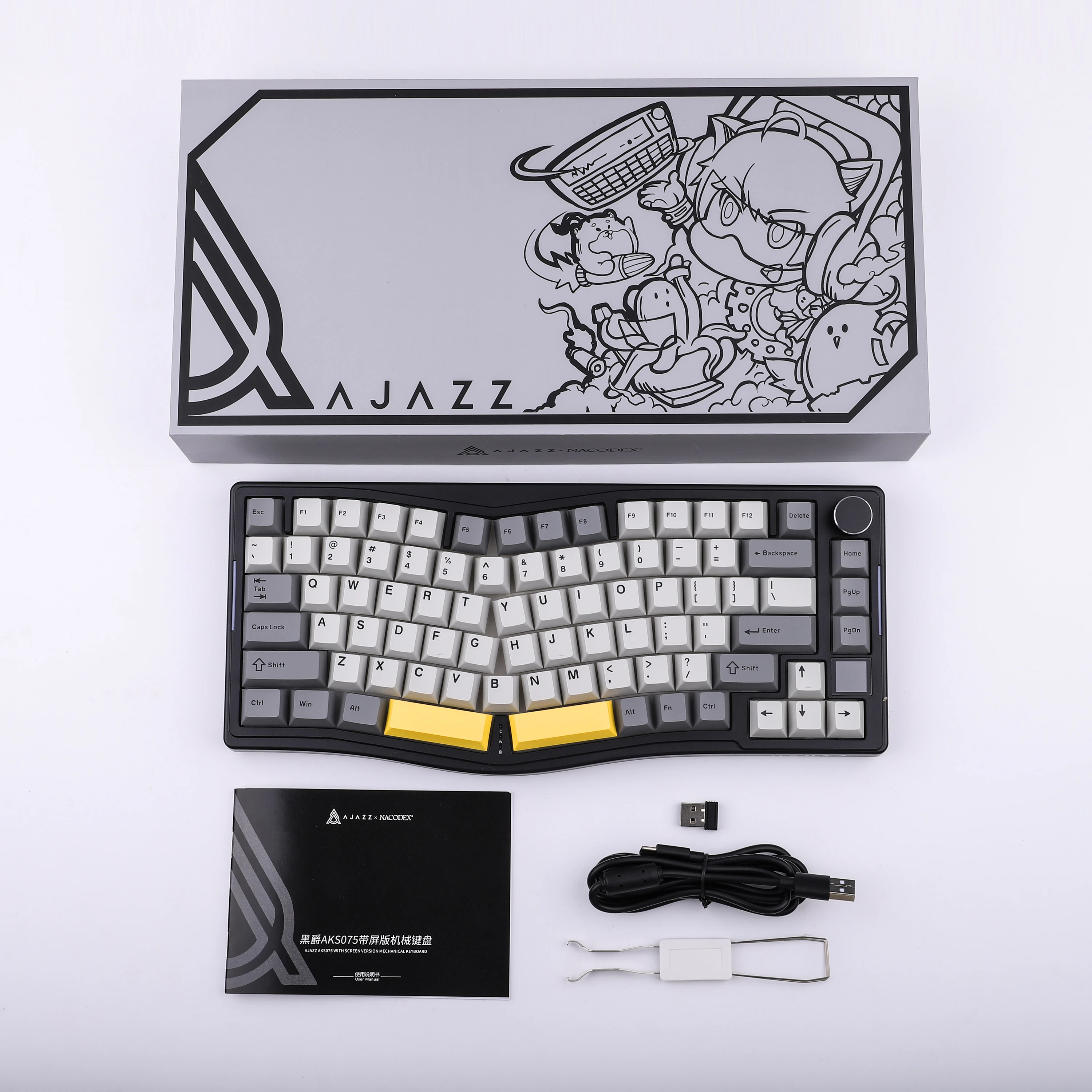 AJAZZ AKS075 82-Key Alice-Layout Hot-Swap Wireless BT5.1/2.4GHz/USB-C Wired Gasket Mechanical Keyboard with 0.85-inch TFT Screen