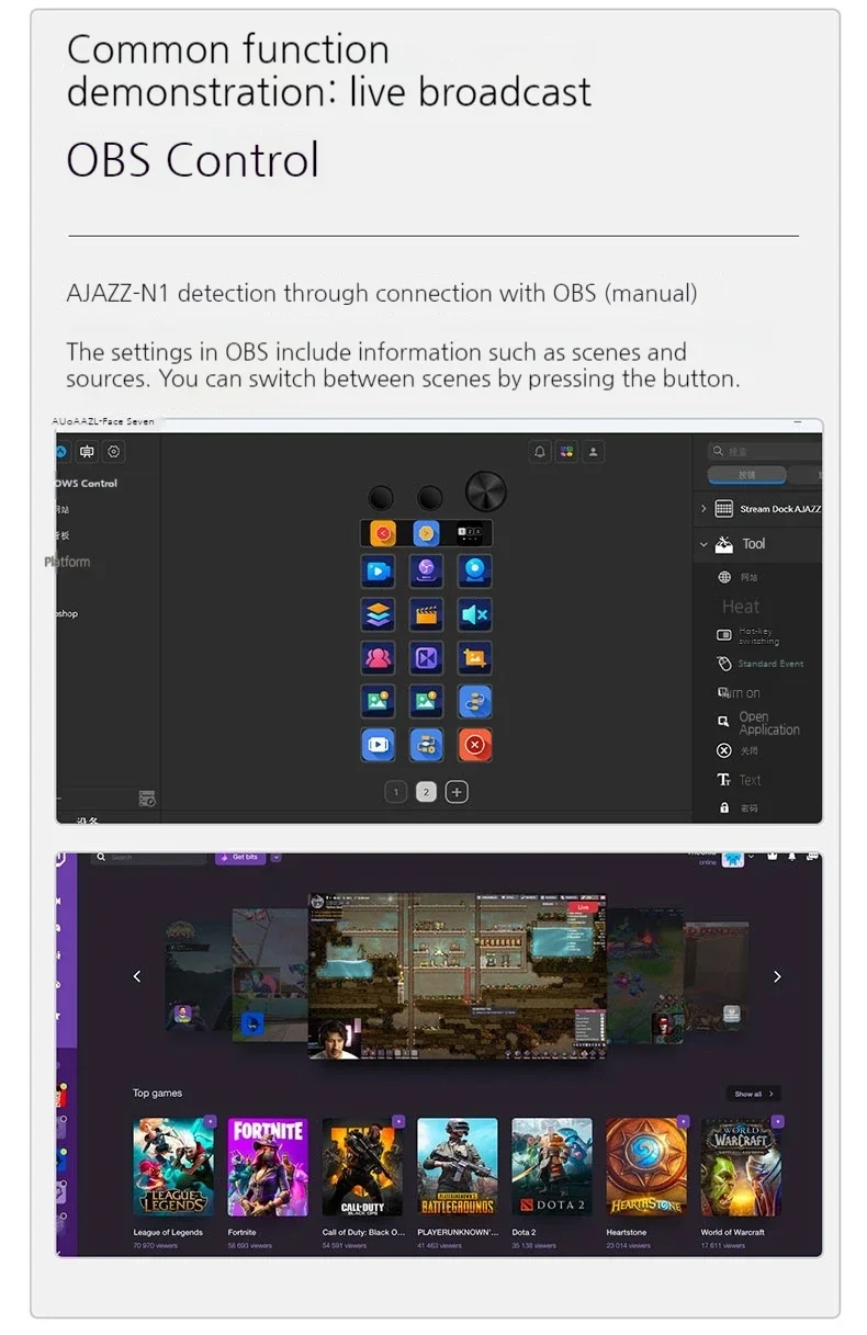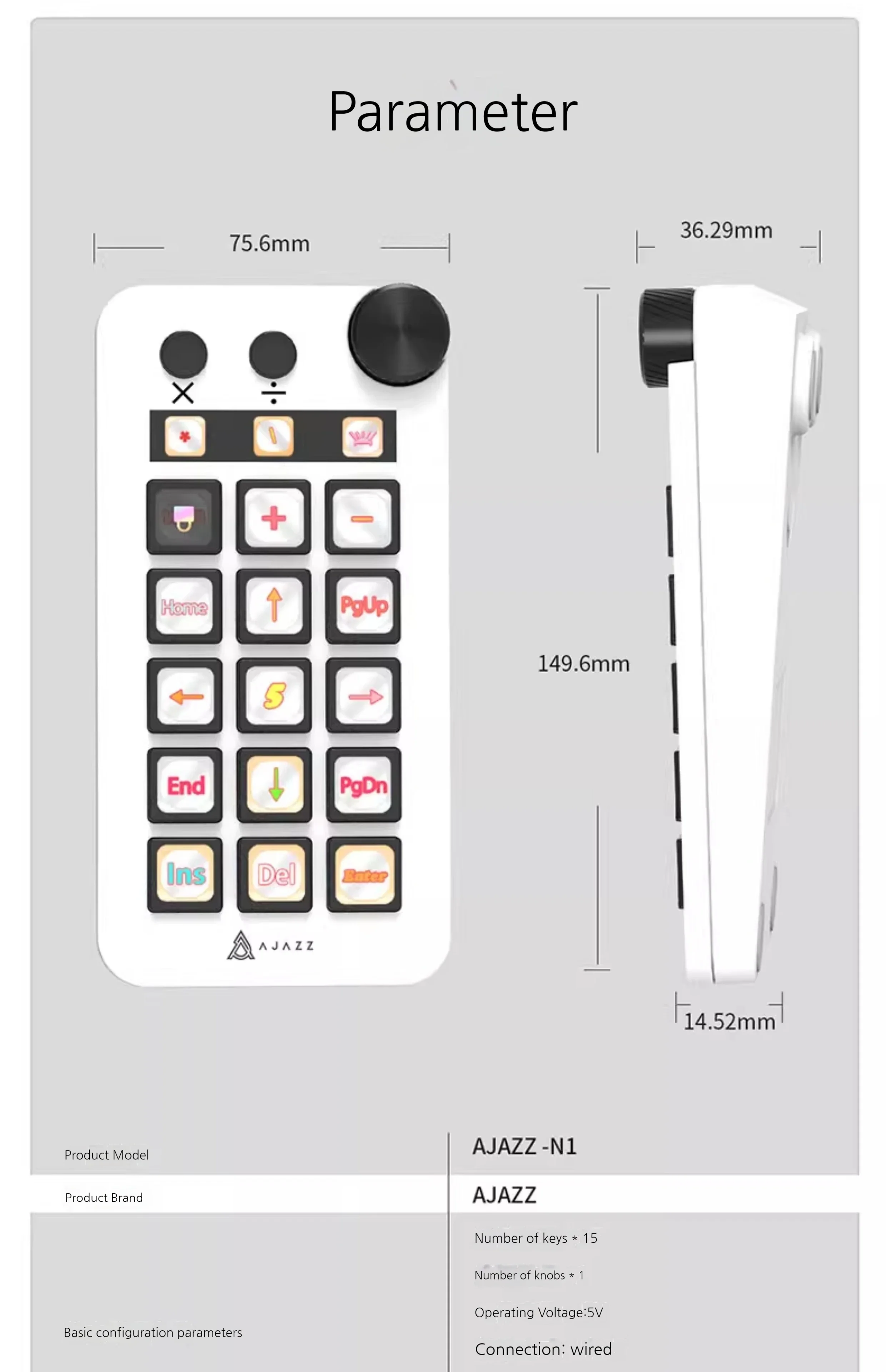 Ajazz N1 Mini consola de visualización multifuncional Panel de teclado programable Assistente transmisión en vivo teclado con botones regalos