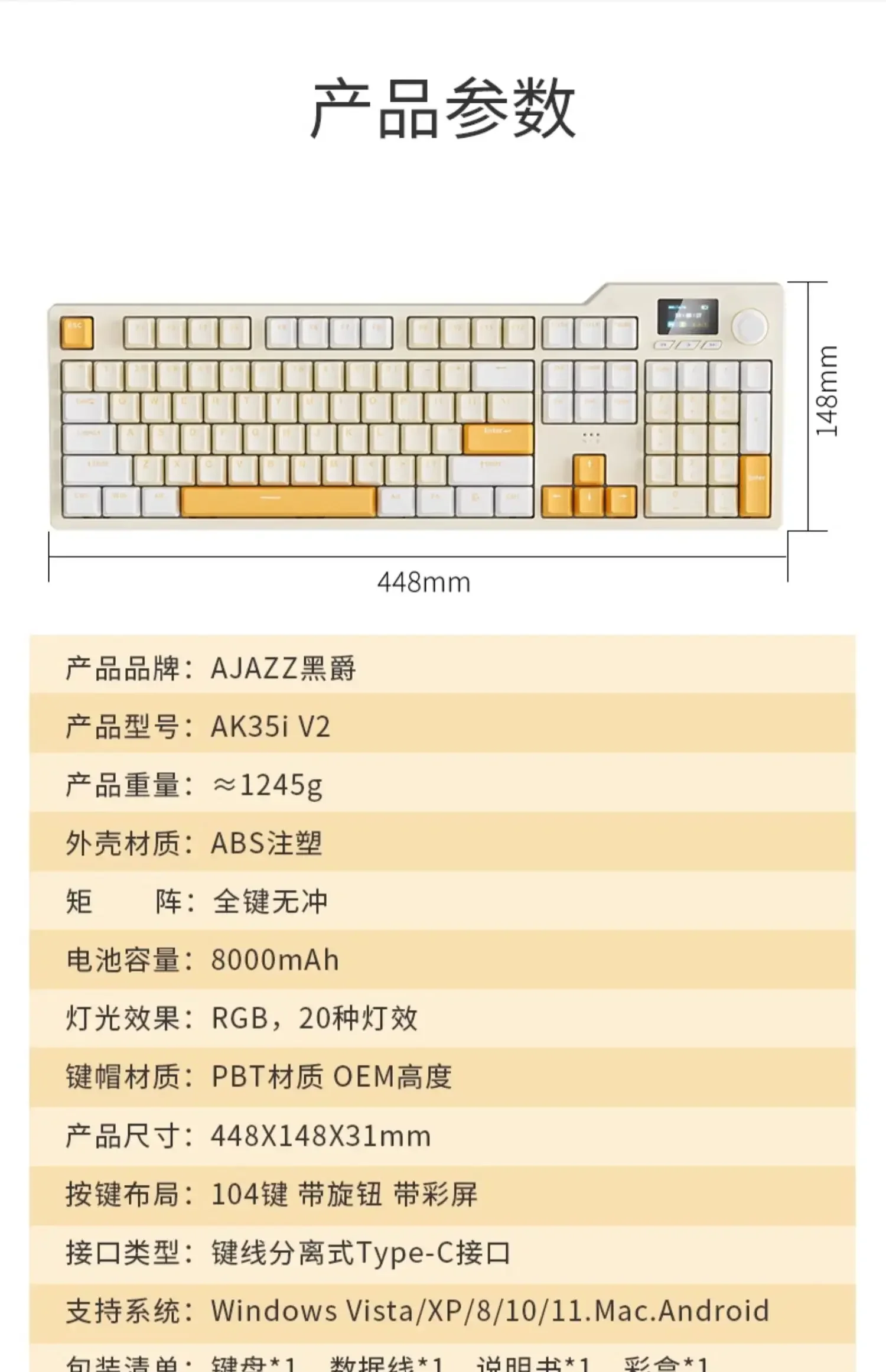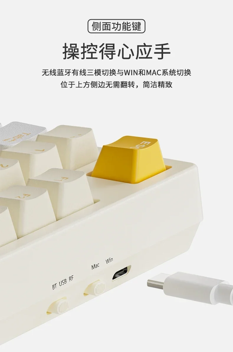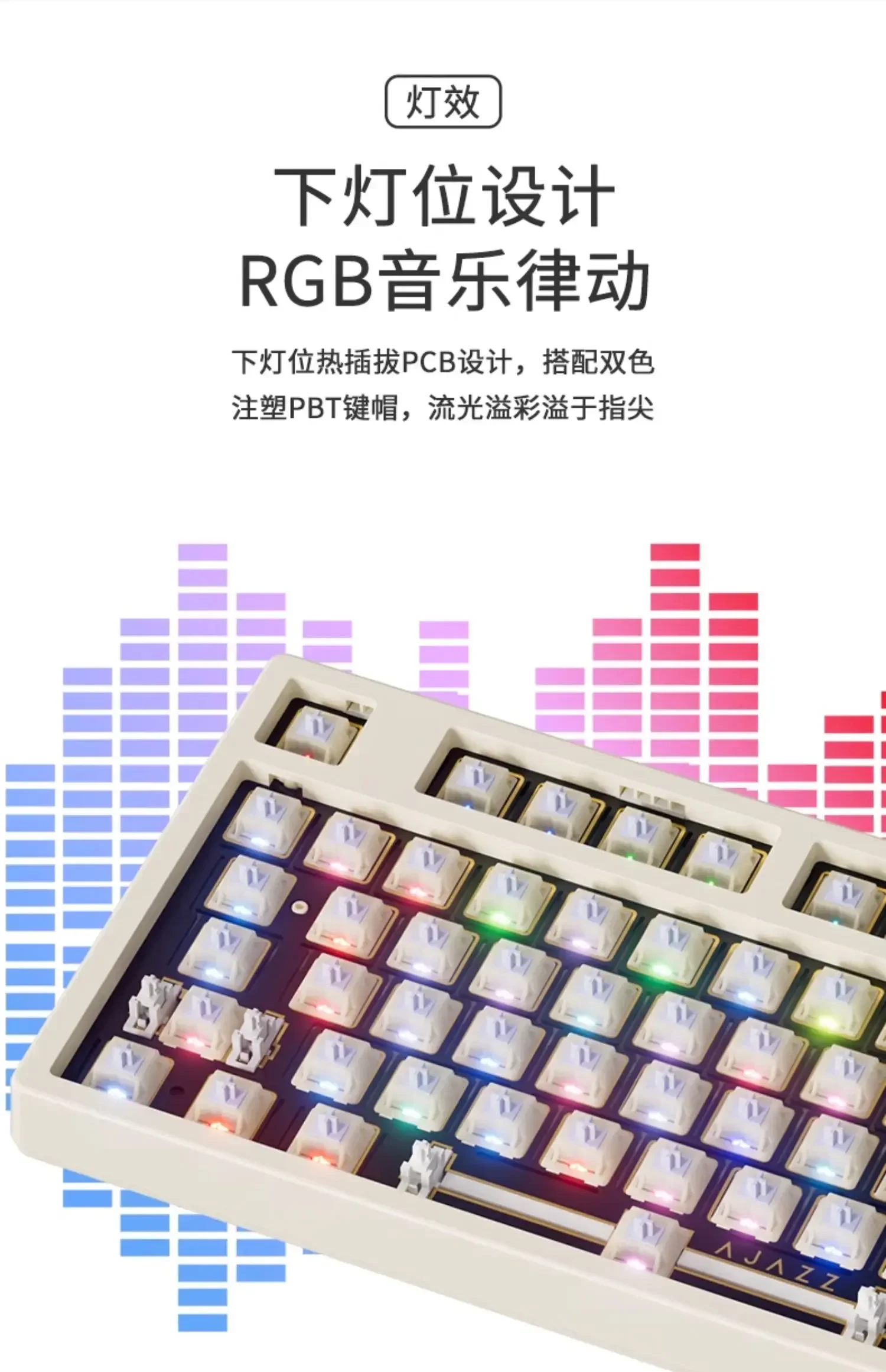 Comprar Ajazz-Teclado mecánico AK820 para videojuegos, periférico inalámbrico con Bluetooth, 3 modos de intercambio en caliente, retroiluminación RGB, personalizado