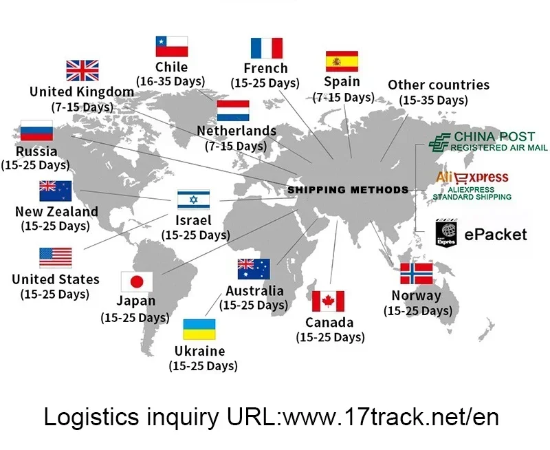 2. Enviaremos el paquete a través de China Post u otro correo nacional. Por lo general, el tiempo de envío es de 15-30 días hábiles según su país. Si no recibe su artículo en 30 días, no dude en ponerse en contacto conmigo para obtener ayuda.