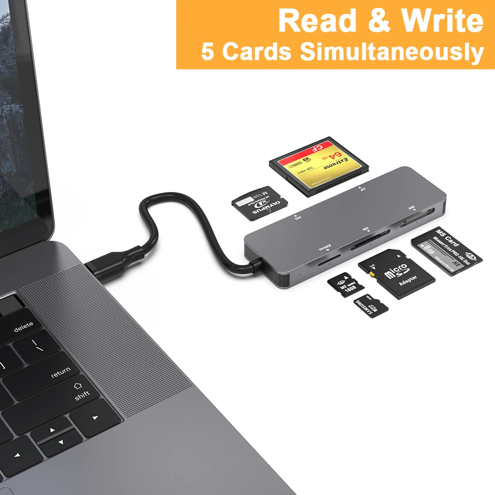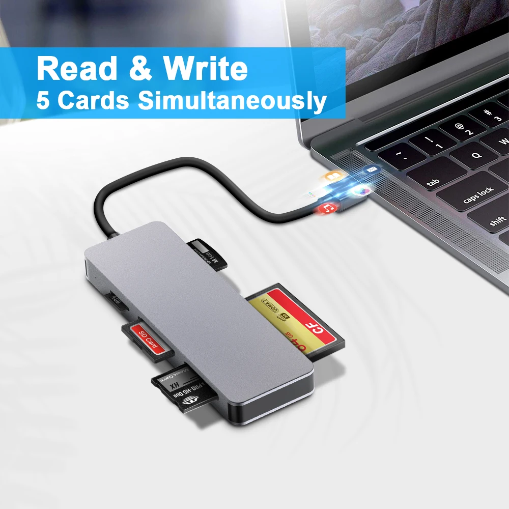 AJIUYU 5 en 1 multifunción tipo C CF XD MS SD M2/TF lector de tarjetas de memoria inteligente adaptador de unidad Flash tipo C ordenador portátil teléfono
