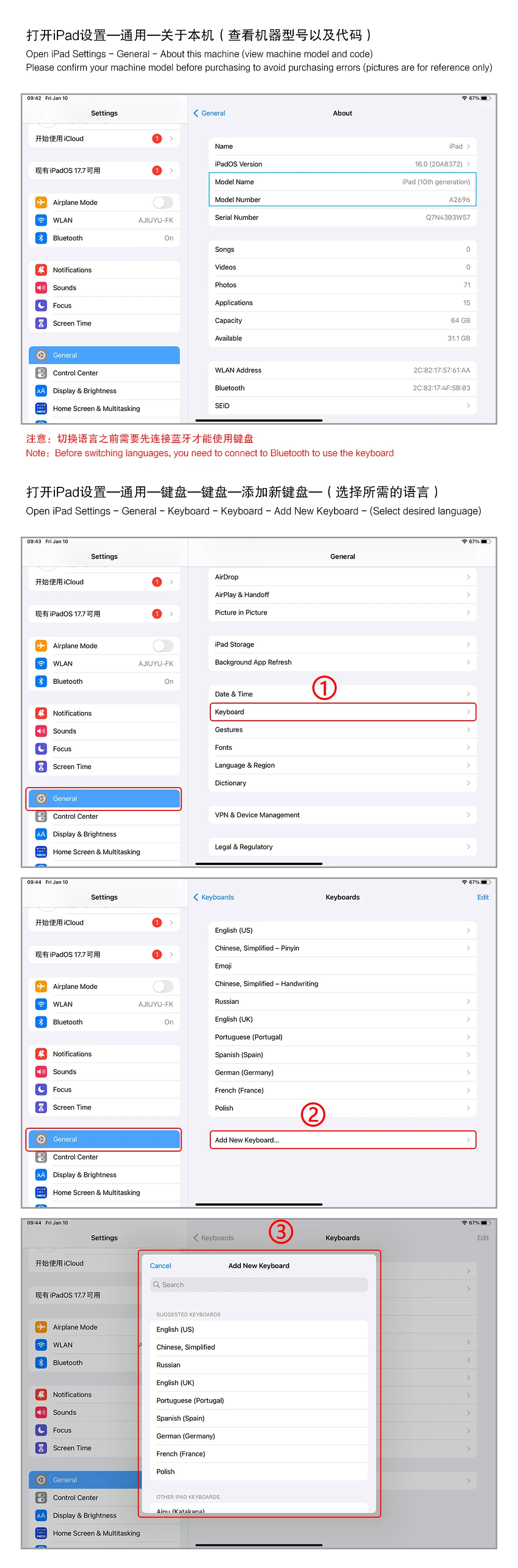 【1】1.Después de conectar Bluetooth, abra su iPad - Configuración - Teclado - Agregue nuevo teclado