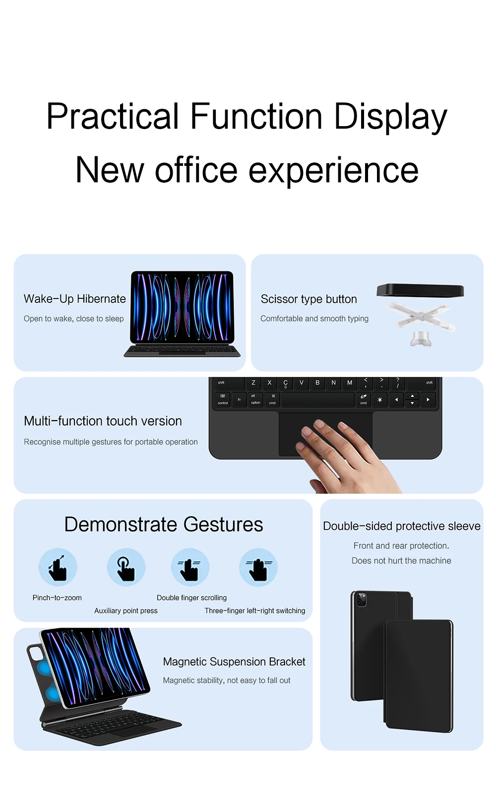 Un producto, usos dobles, cuando está desplegado, es un teclado para tableta y, cuando está cerrado, es una funda protectora, no extraíble, lo que le permite satisfacer las necesidades de más escenarios.