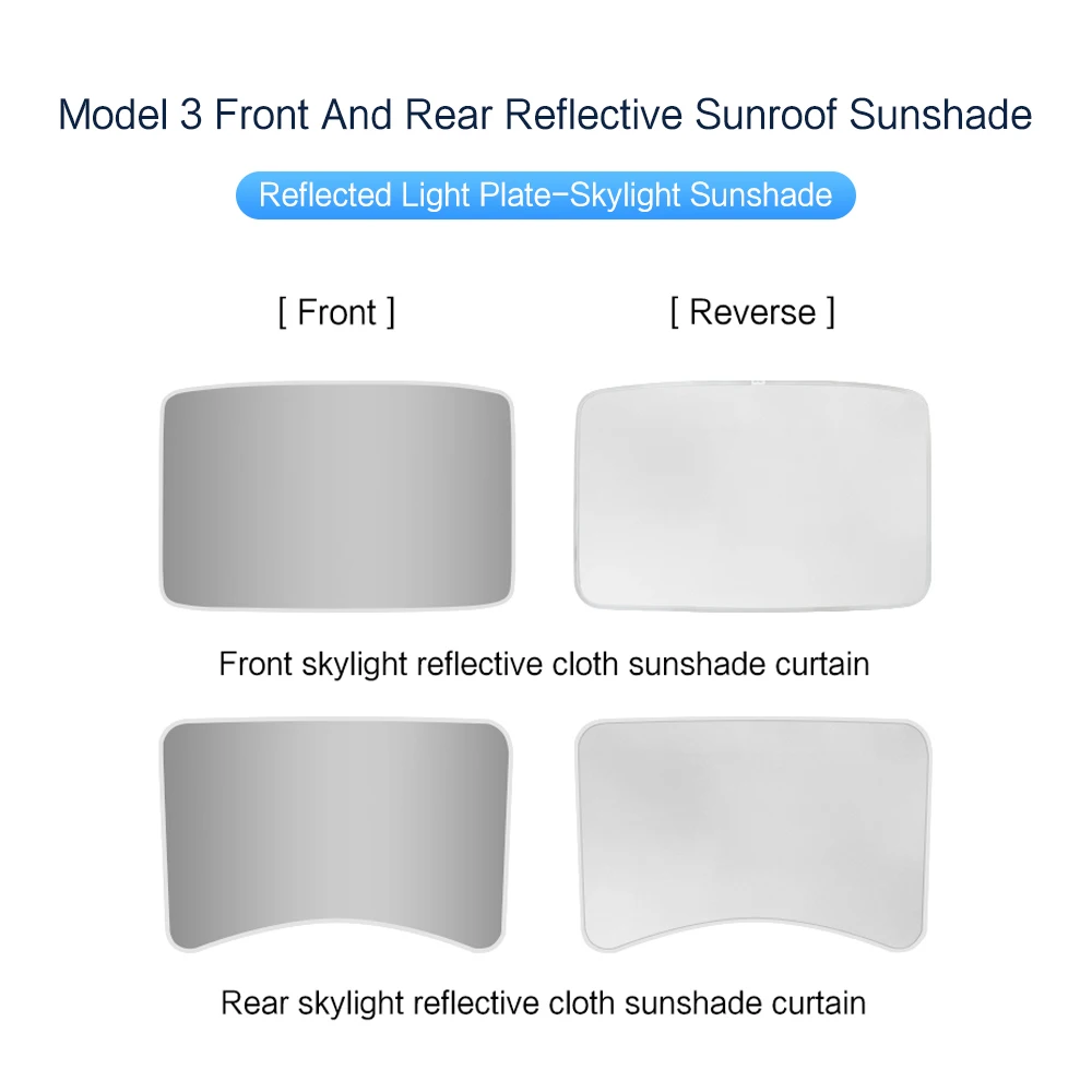Construido con tela de malla ligera con un marco rígido plegable, el parasol de techo de vidrio bloquea 95% de transmitancia luminosa sin comprometer la visibilidad hacia atrás.