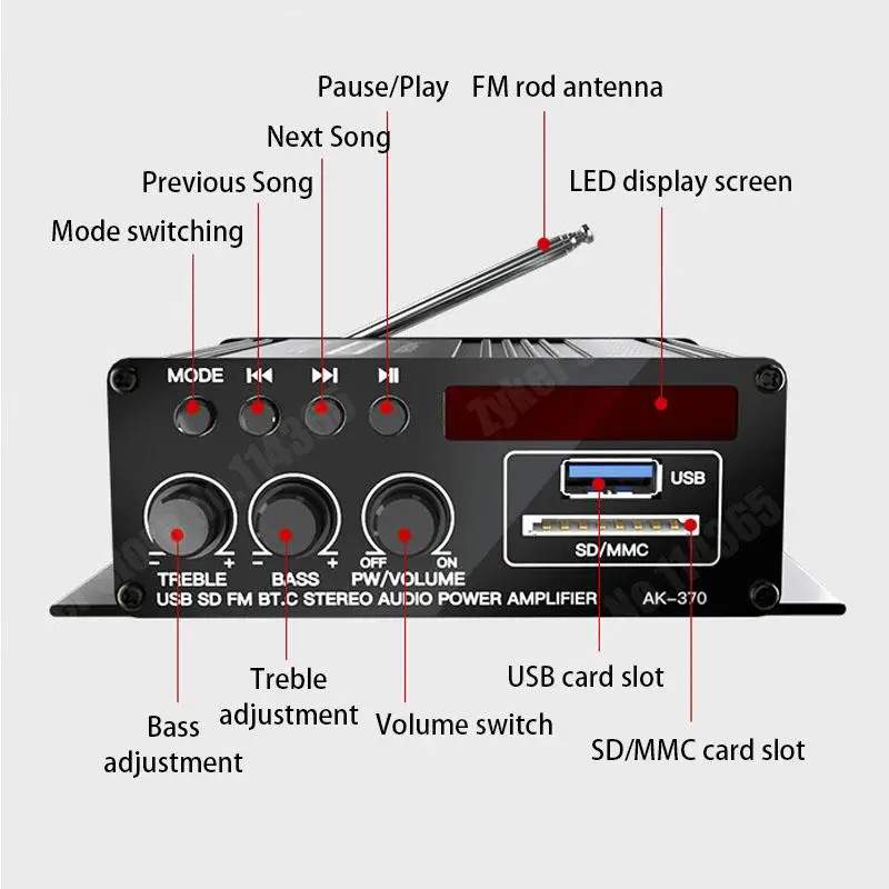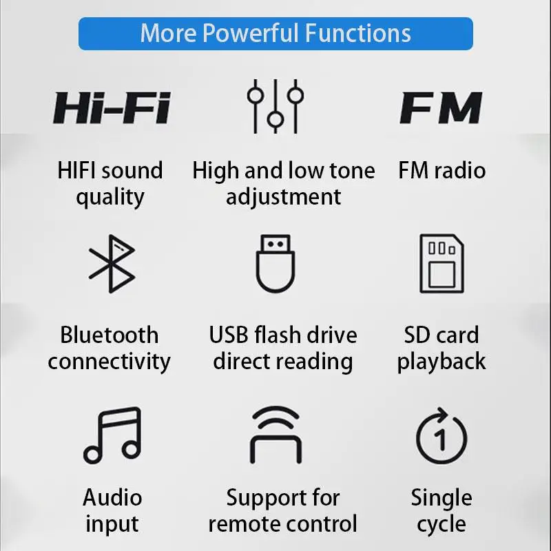 -Tarjeta TF, AUX, disco U, reproducción en formato MP3, compatible con conexión inalámbrica bluetooth.