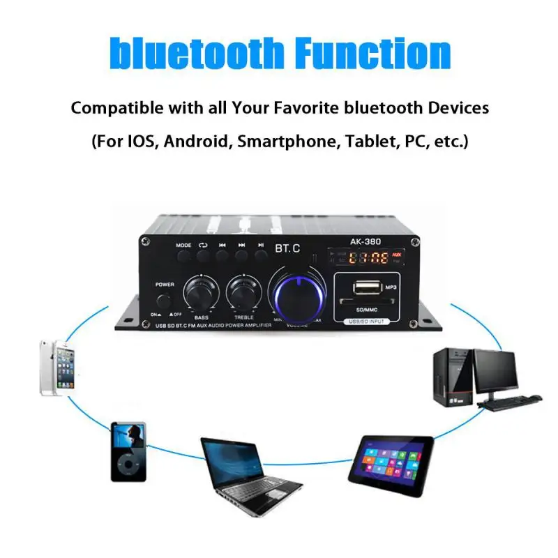 -Mini amplificador de potencia de audio bluetooth digital HIFI.