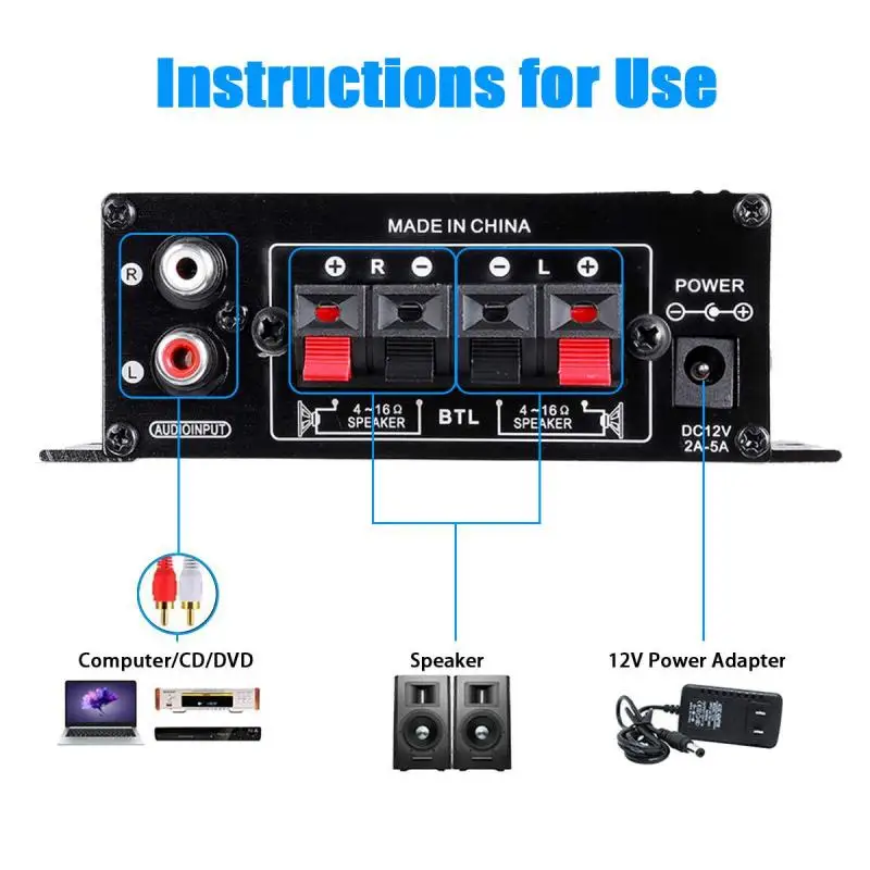 1 x amplificador estéreo de audio (cable de alimentación incluido en el paquete)