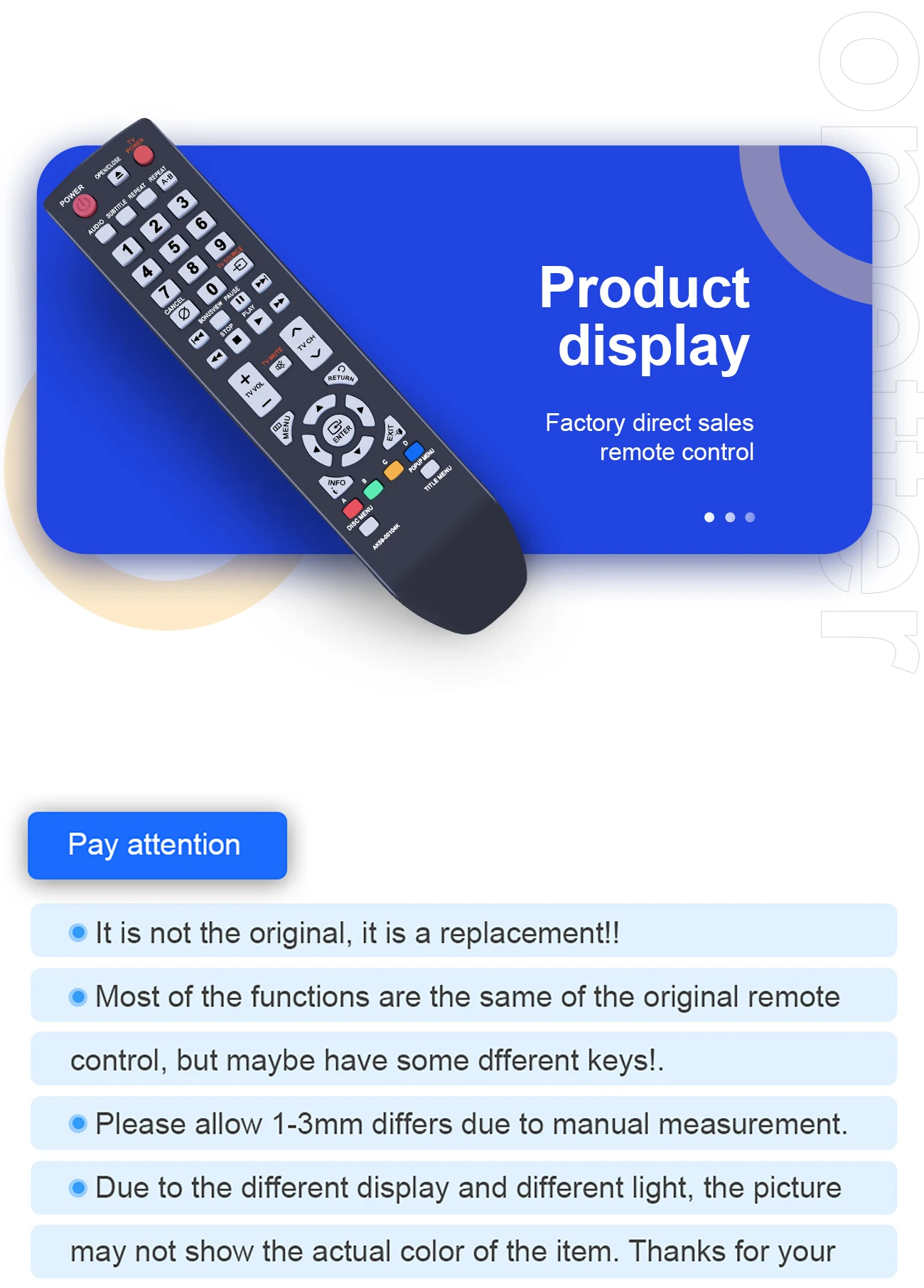 Asegúrese de que este es el control remoto correcto antes de realizar el pedido. Gracias ~