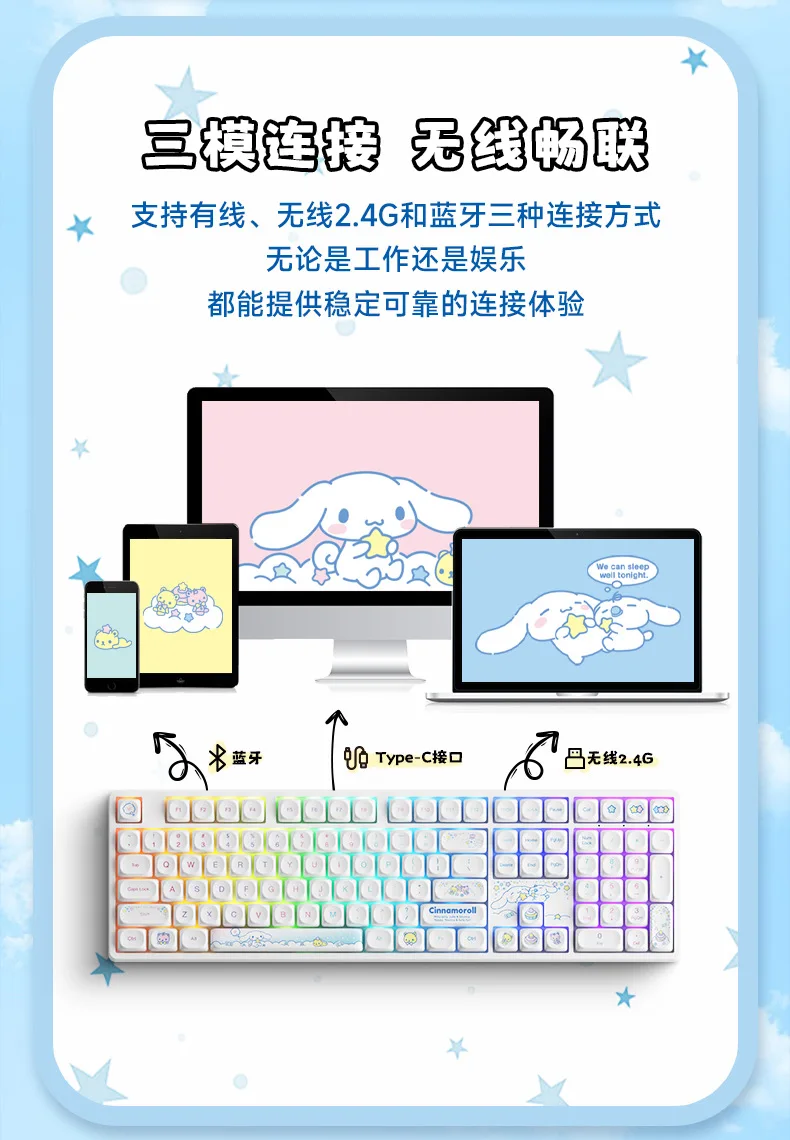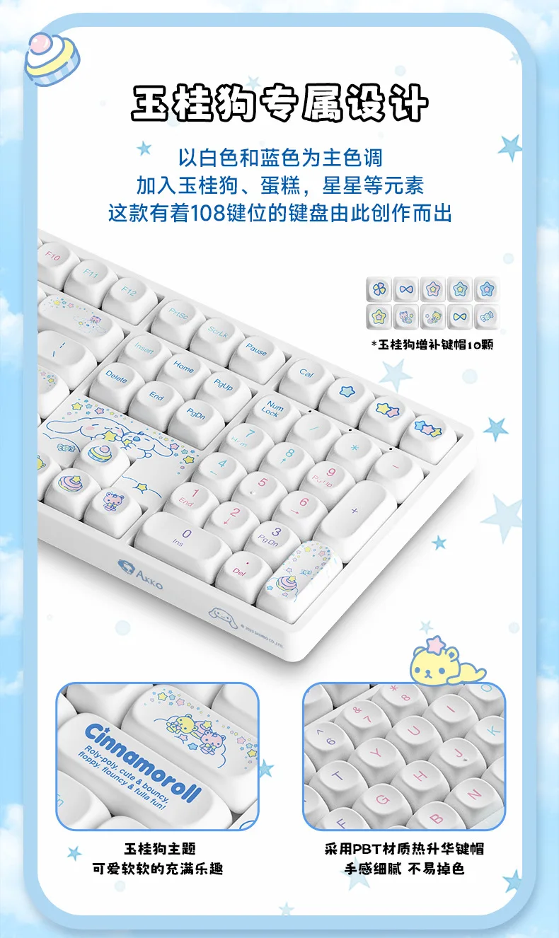 Comprar Akko 5108B Plus Teclado mecánico Cinnamoroll tres modos personalizado teclado para juegos de dibujos animados para niña RGB Hot Swap Pc Gamer MOA