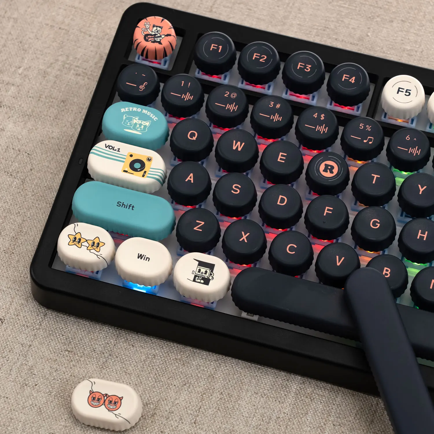 Con tecnología avanzada de sublimación de tinte de 5 caras, las teclas presentan una impresión vibrante y colorida en cada superficie. Fabricadas con materiales PBT duraderos, las leyendas no se desvanecerán fácilmente.