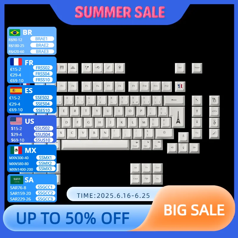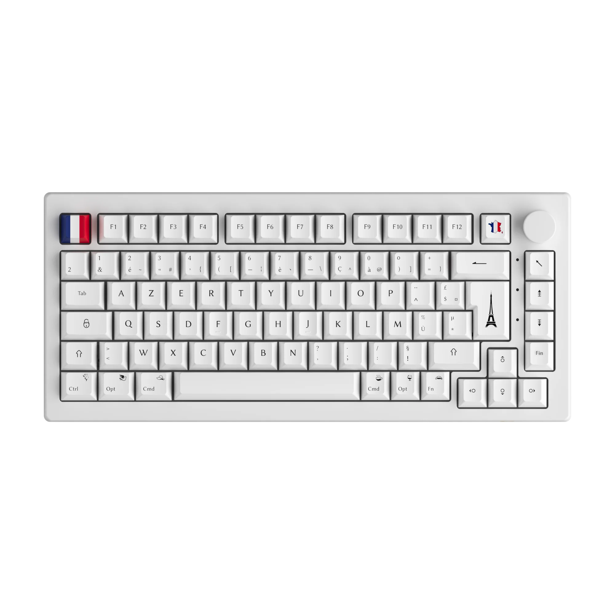 Juego de teclas Akko con diseño de primera, decorado con elemento France, en sublimación de tinte PBT y perfil Cherry.