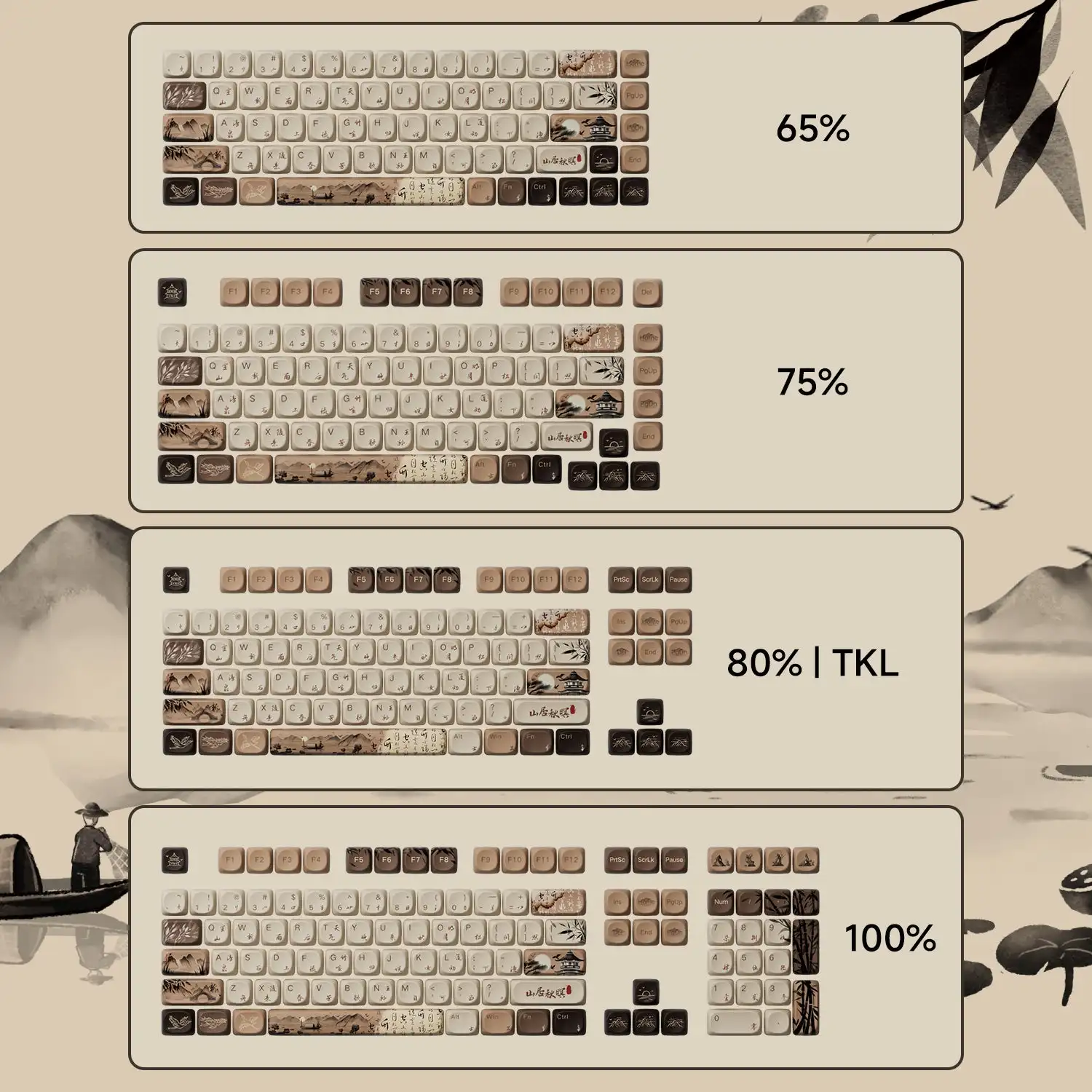 Compatible con teclados de tamaños principales que incluyen, entre otros, 60%, 64 teclas, 65%, TKL, 75%, 96%, 1800 compactos y teclados de tamaño completo