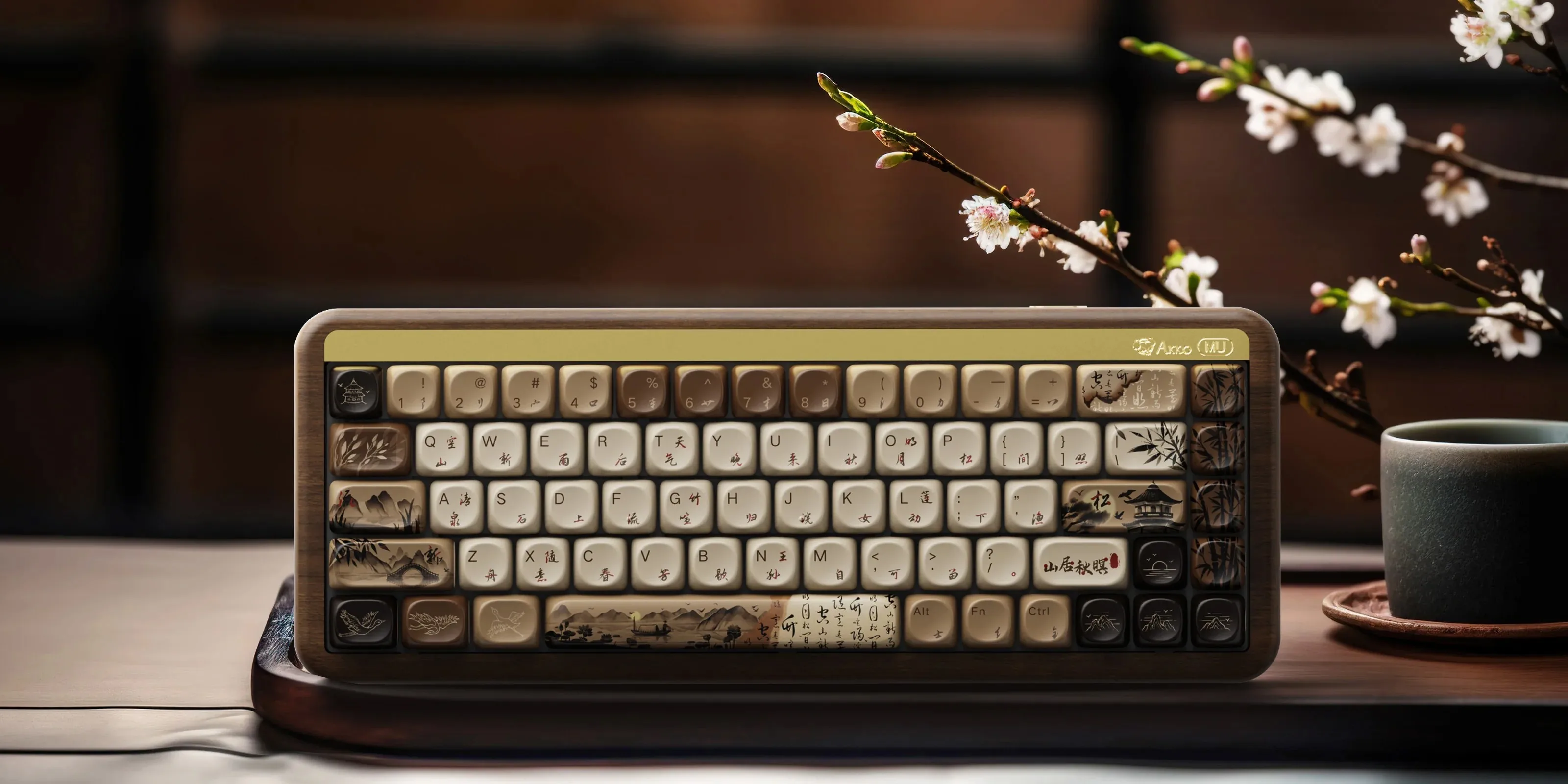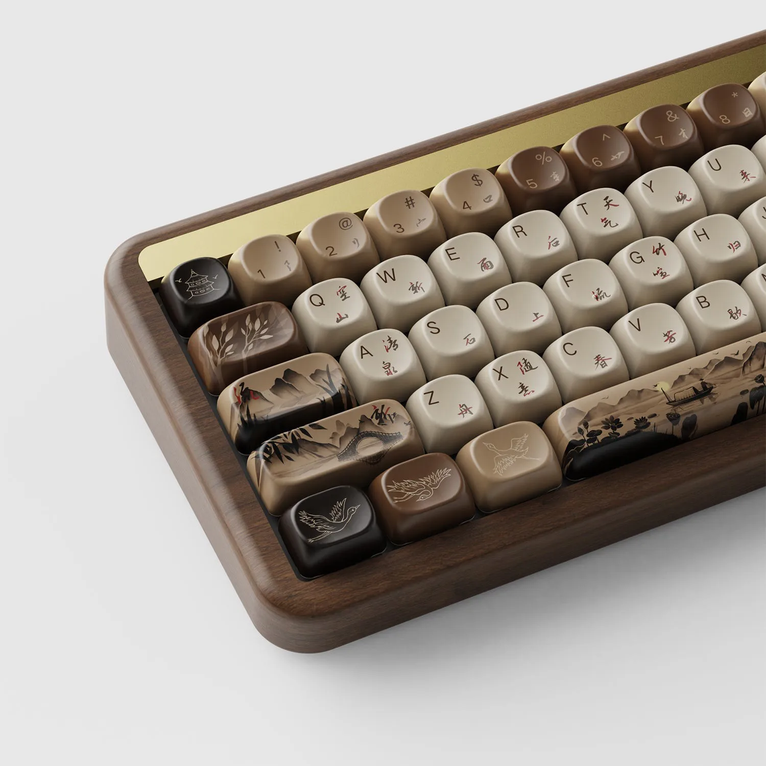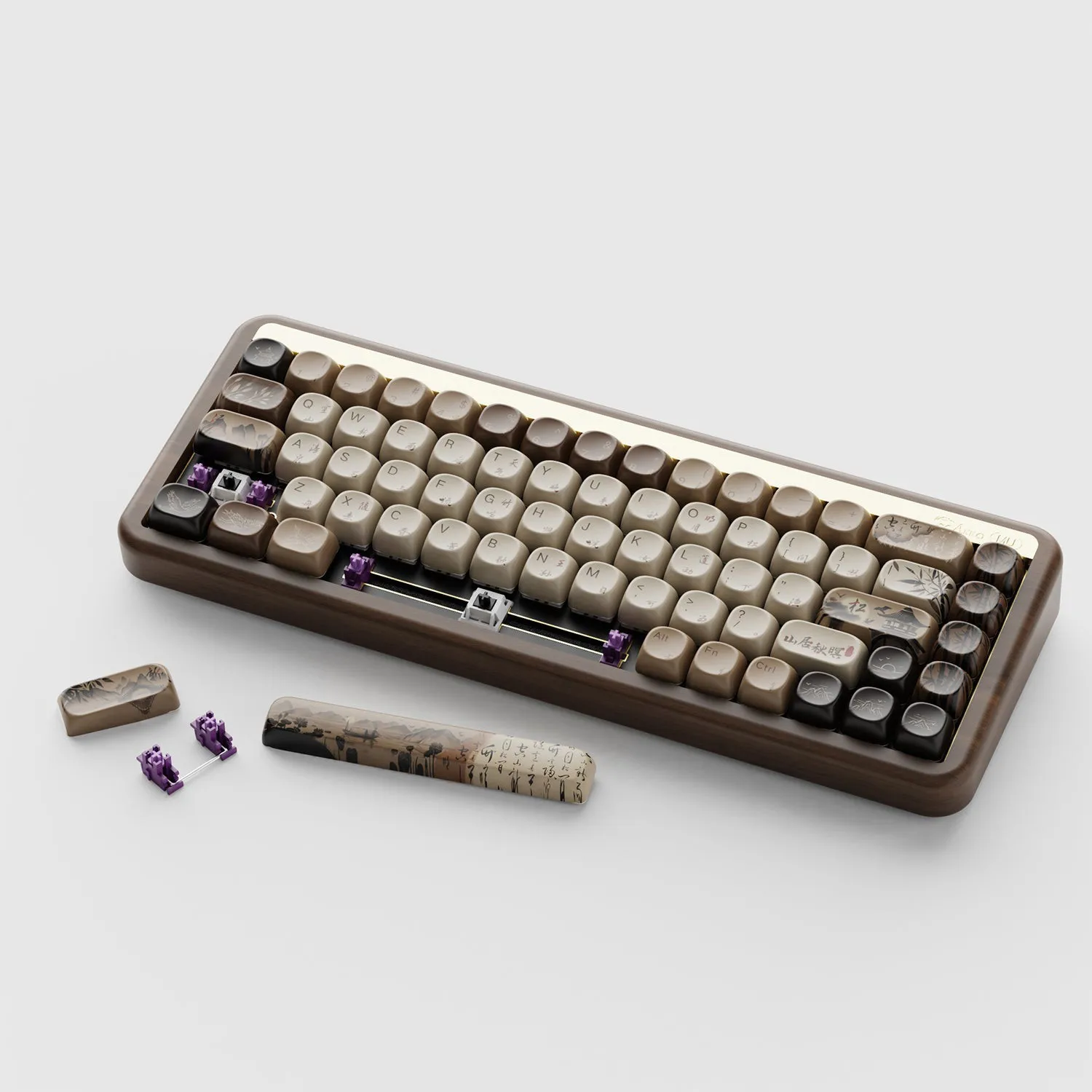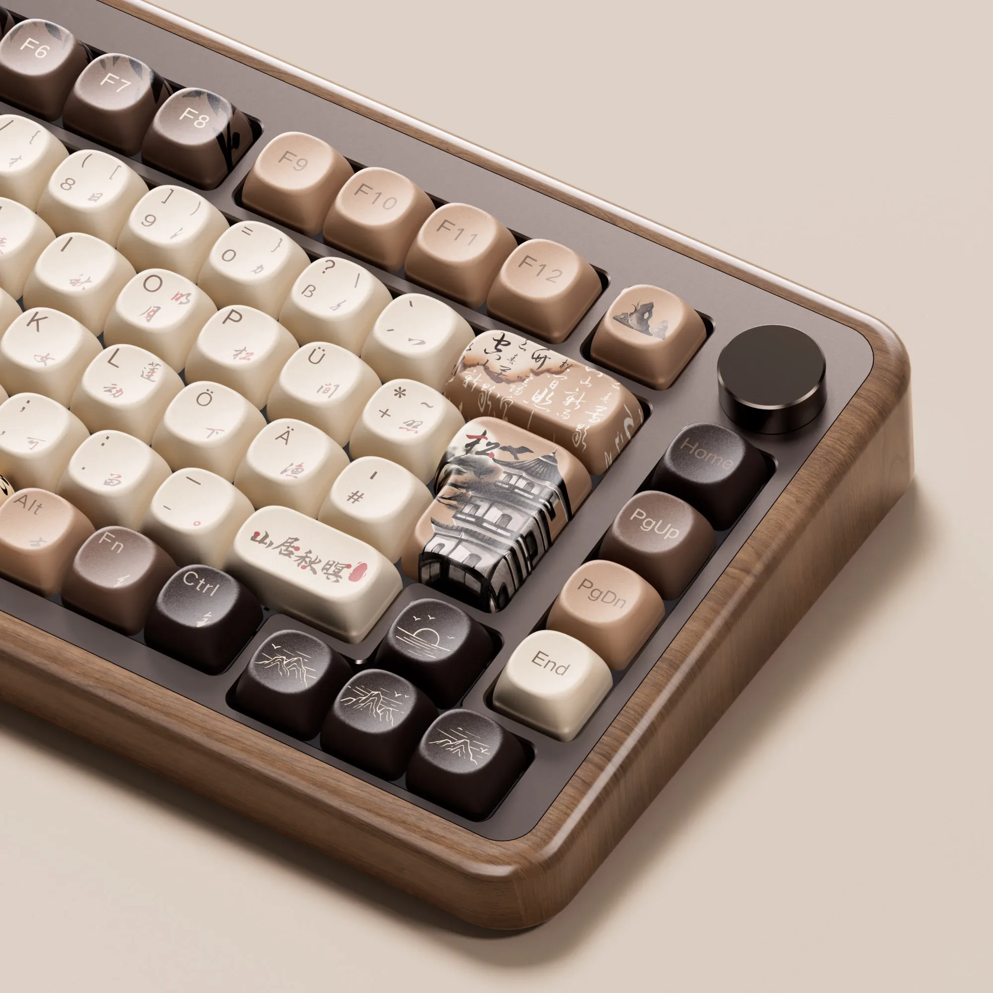 Abraza la belleza de la poesía china y el arte del paisaje con el teclado MU01 Mountain Seclusion.La tecla presenta el poema completo "Autumn Twilight in the Mountain Abode" junto con impresionantes pinturas de paisajes chinos.