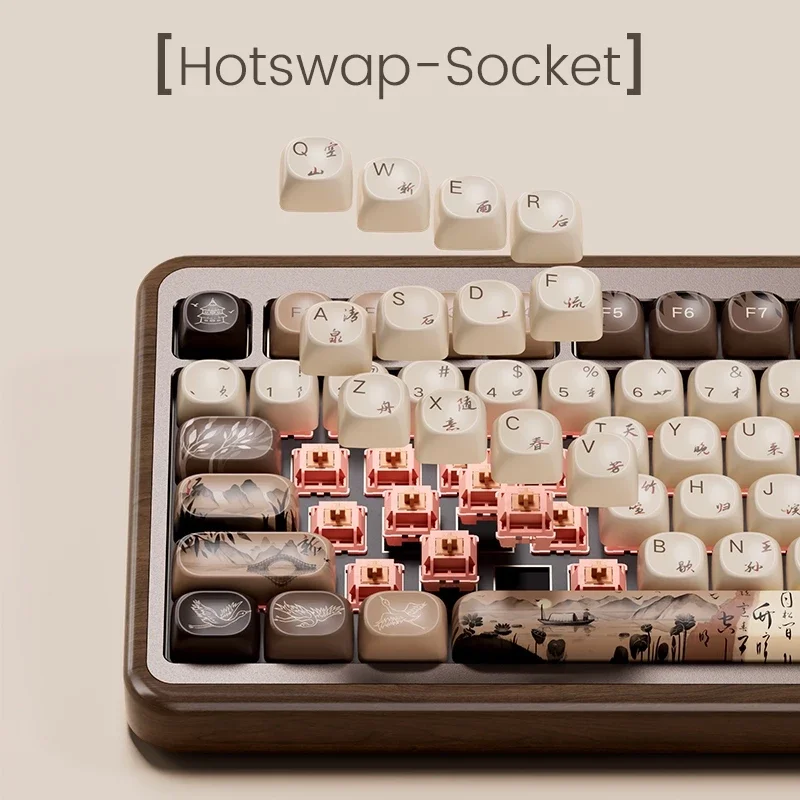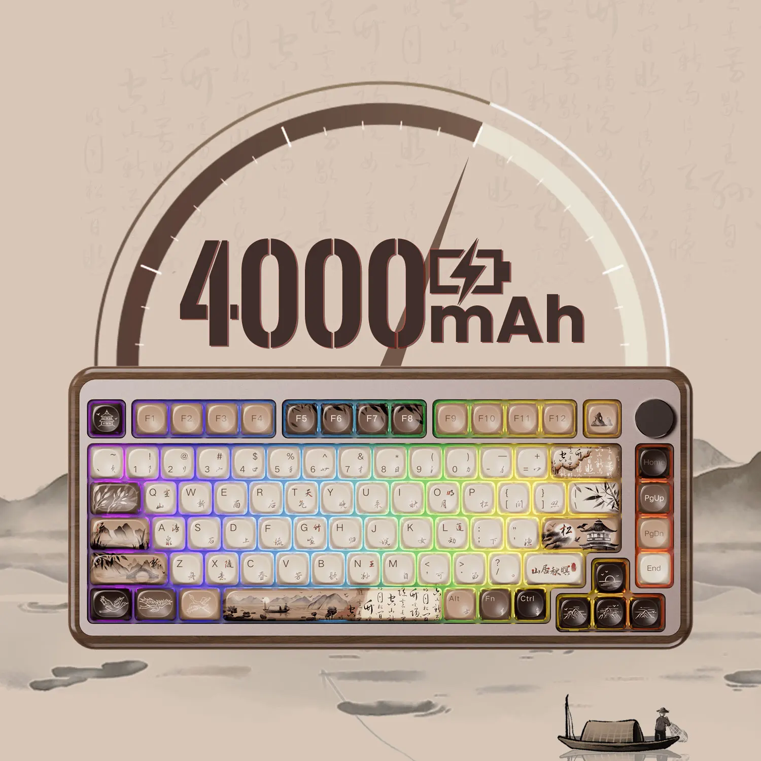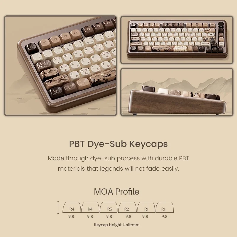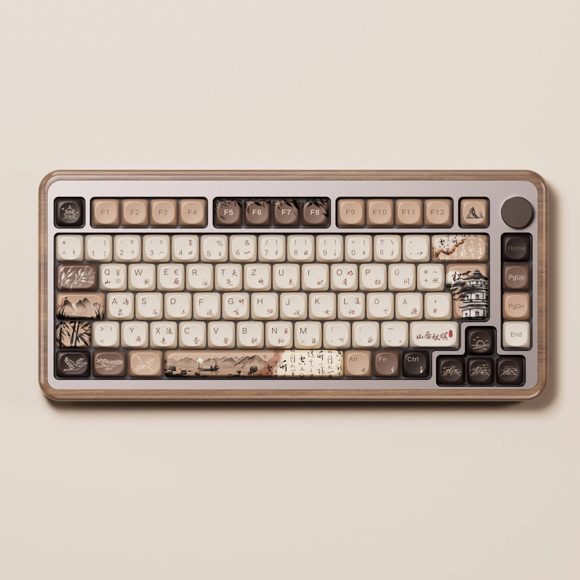 Abraza la belleza de la poesía china y el arte del paisaje con el teclado MU01 Mountain Seclusion.La tecla presenta el poema completo "Autumn Twilight in the Mountain Abode" junto con impresionantes pinturas de paisajes chinos.