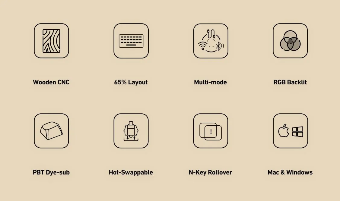 Elaborado con exquisita madera de nogal con precisión CNC.La madera de nogal imparte este teclado con elegancia y durabilidad.Ya sea para uso diario o aplicaciones profesionales, MU01 Mountain Seclusion ofrece una combinación seductora de belleza natural y tecnología moderna, brindando una experiencia de escritura única.