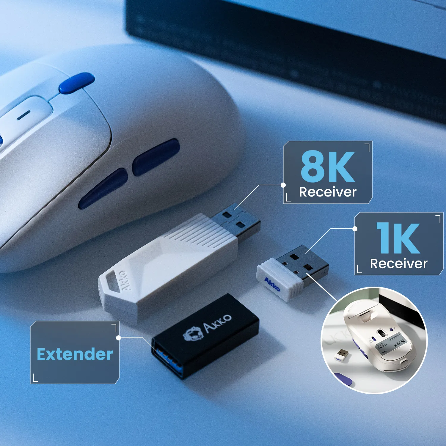 Akko Pulse 01 viene con receptores de 8K y 1K.Al cambiar entre los modos 1K y 8K, deberá reemplazar el receptor y volver a emparejar el mouse en el controlador.